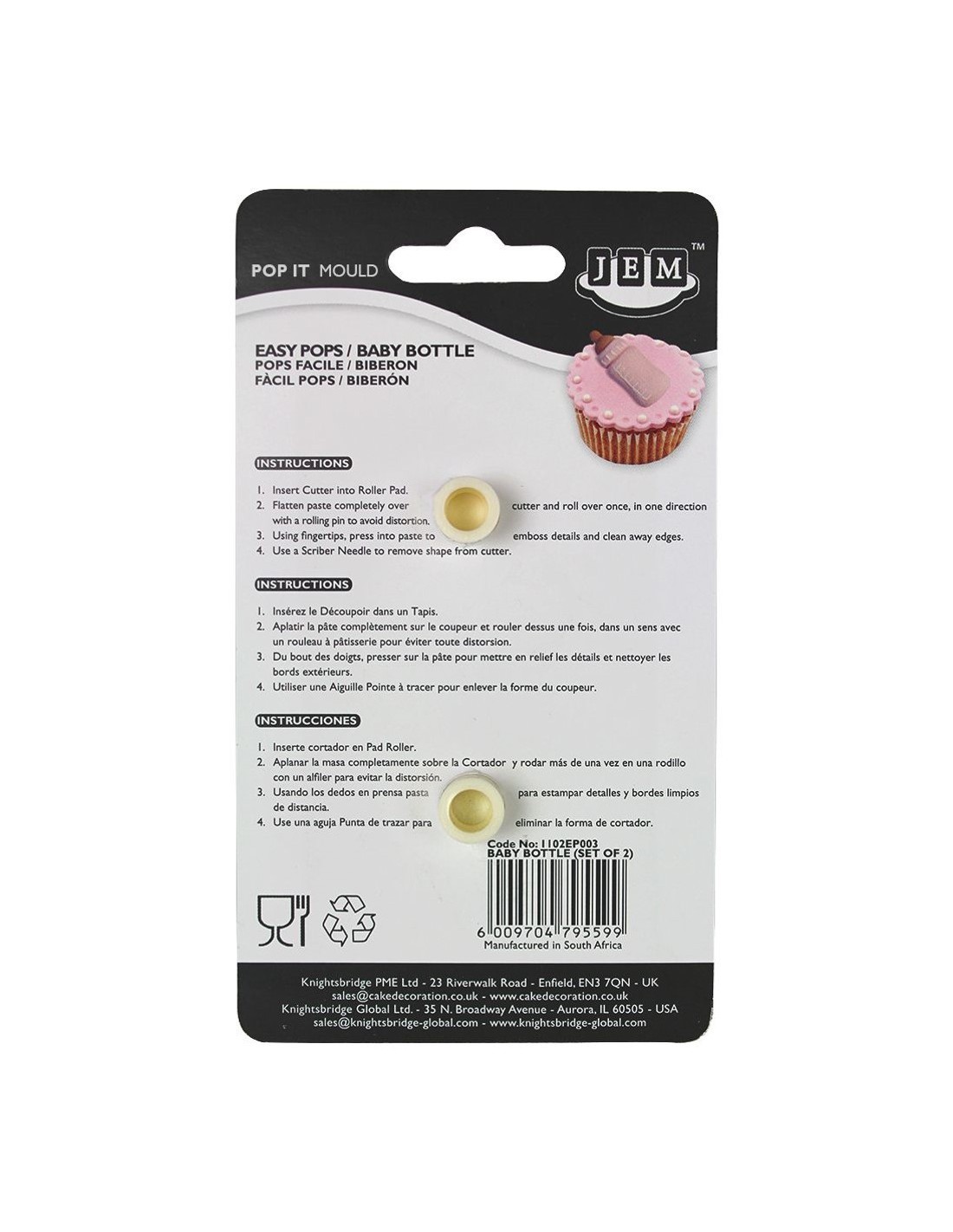 Con este set de 2 cortadores JEM Pop It Biberón (JEM Pop It® Baby Bottle) puedes hacer preciosas decoraciones en pasteles, cupcakes, galletas y mucho más. Estos cortadores son perfectos para usar con fondant, pasta de goma y pasta de modelar.