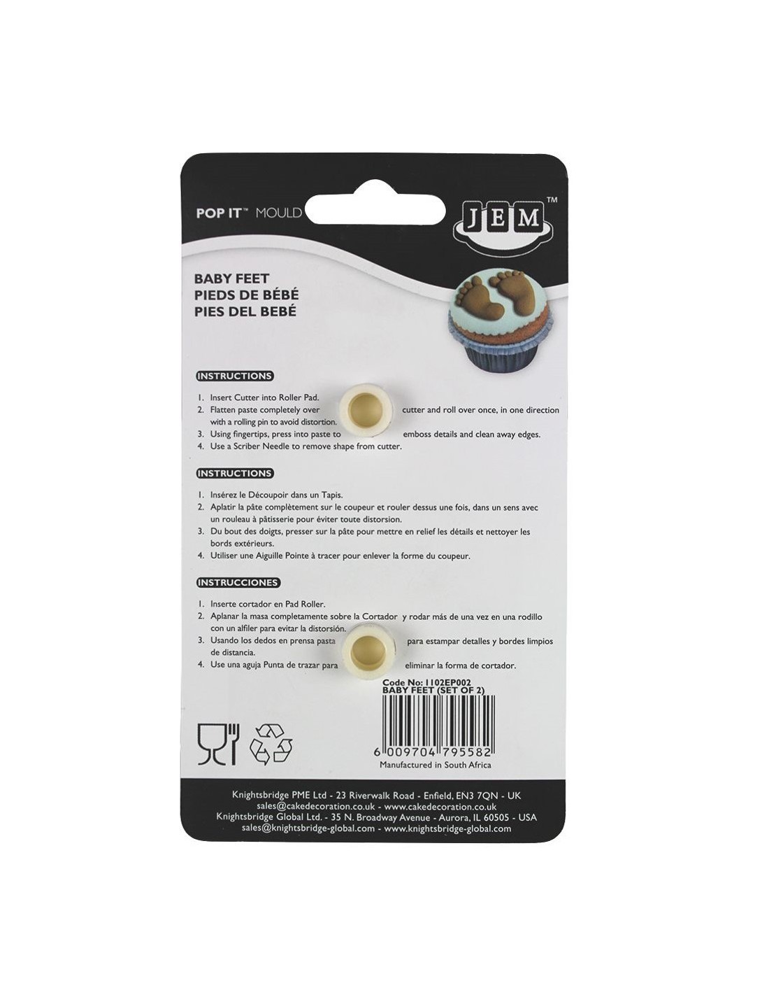 Gracias a los moldes Pop It de JEM, podrás hacer de forma muy fácil unos divertidos pies de bebé. El set contiene dos moldes de distintos tamaños, ideales para decorar cupcakes, tartas, galletas y mucho más.