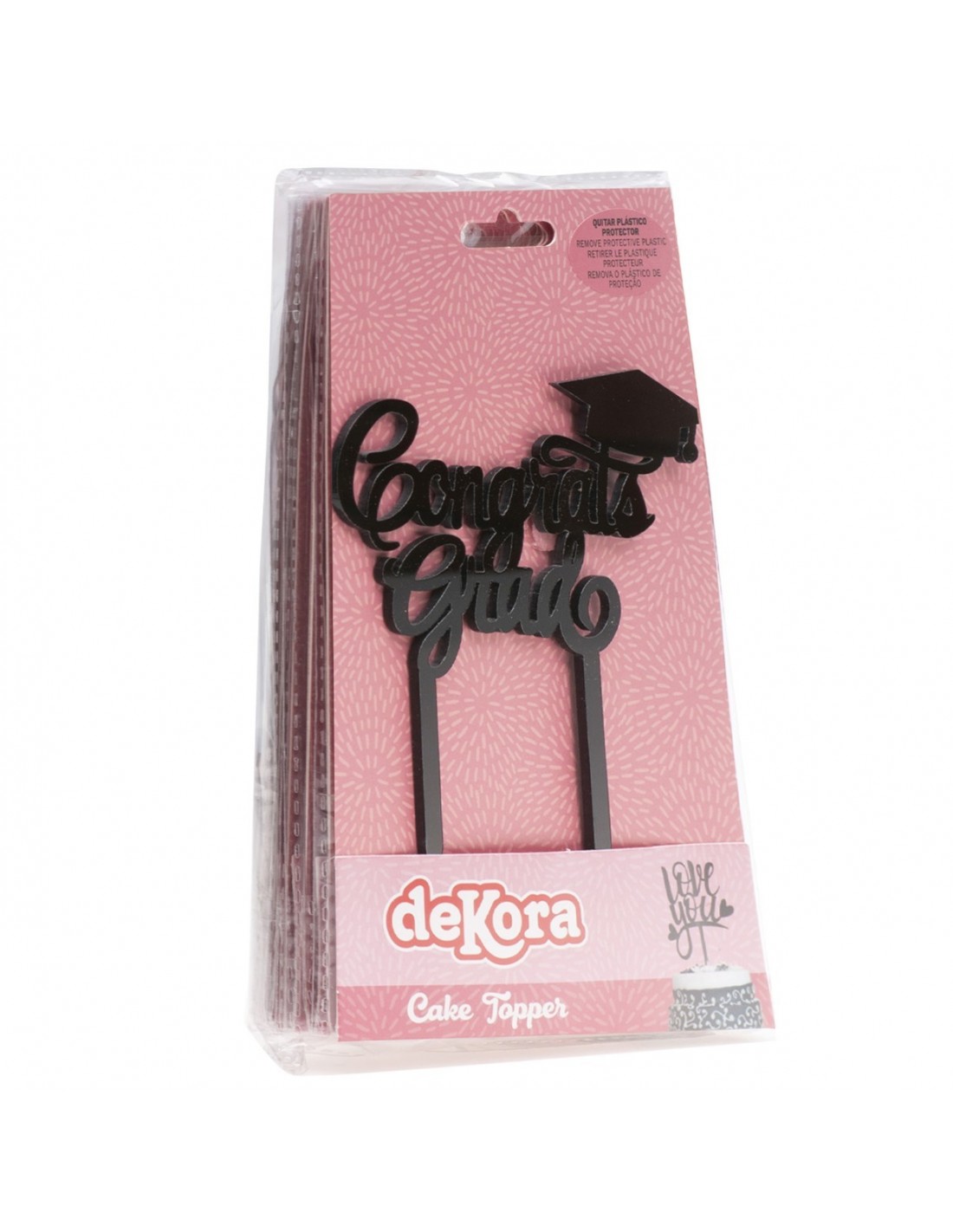 Topper acrilico de Graduación en color negro. Ideal para poner sobre la tarta de la celebración y luego conservar de recuerdo.