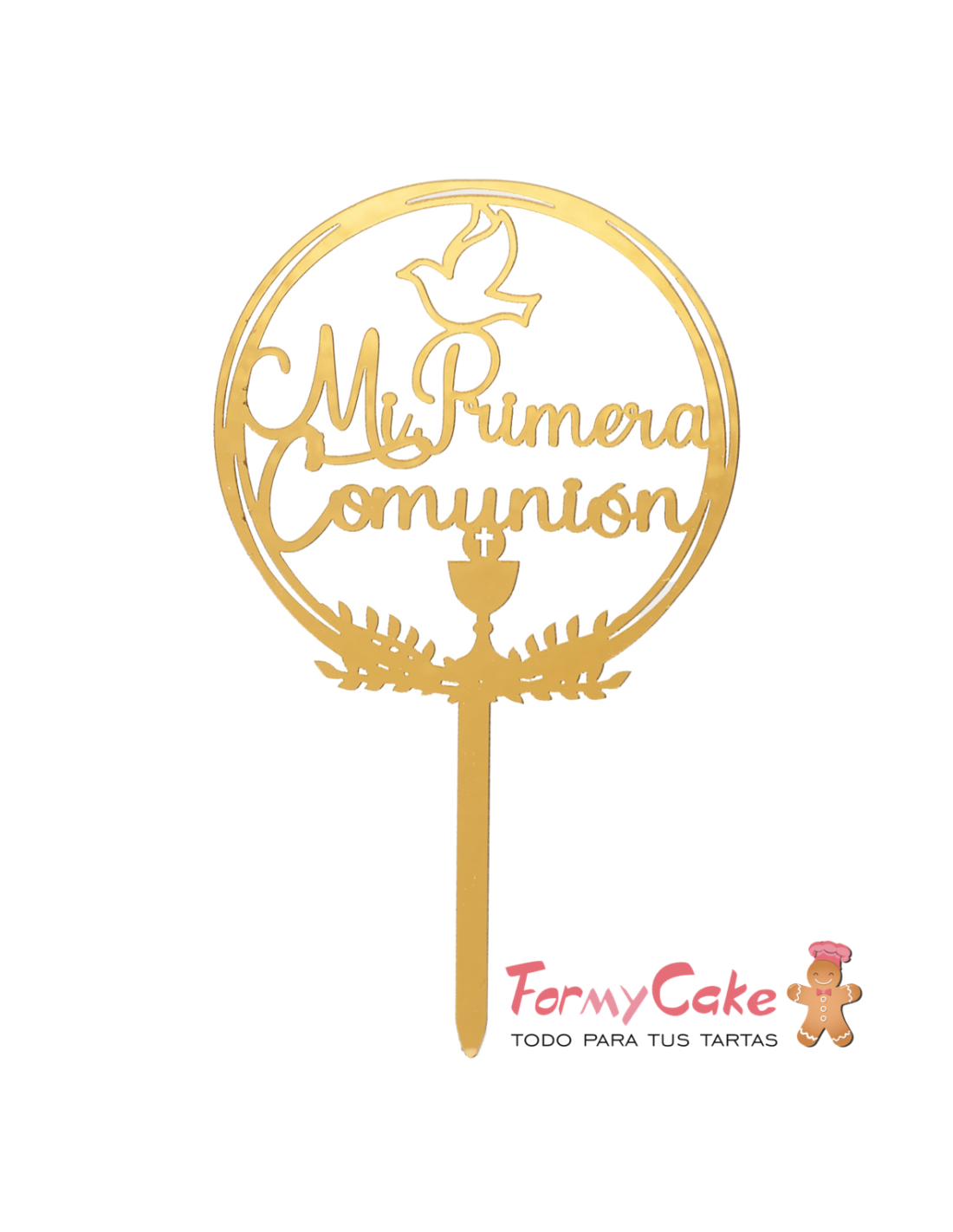 Topper Dorado con dedicatoria de Mi Primera Comunión.