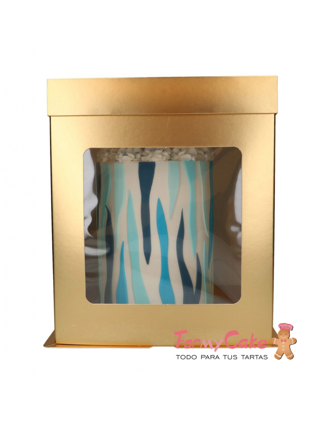 Caja Dorada Alta con Ventana 26x26x29,4cm Funcakes
