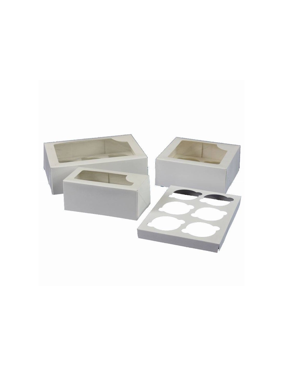 Cajas para 4 cupcakes blancas con ventana. Perfectas para presentar tus cupcakes o entregarlos sin riesgo de que se estropeen.