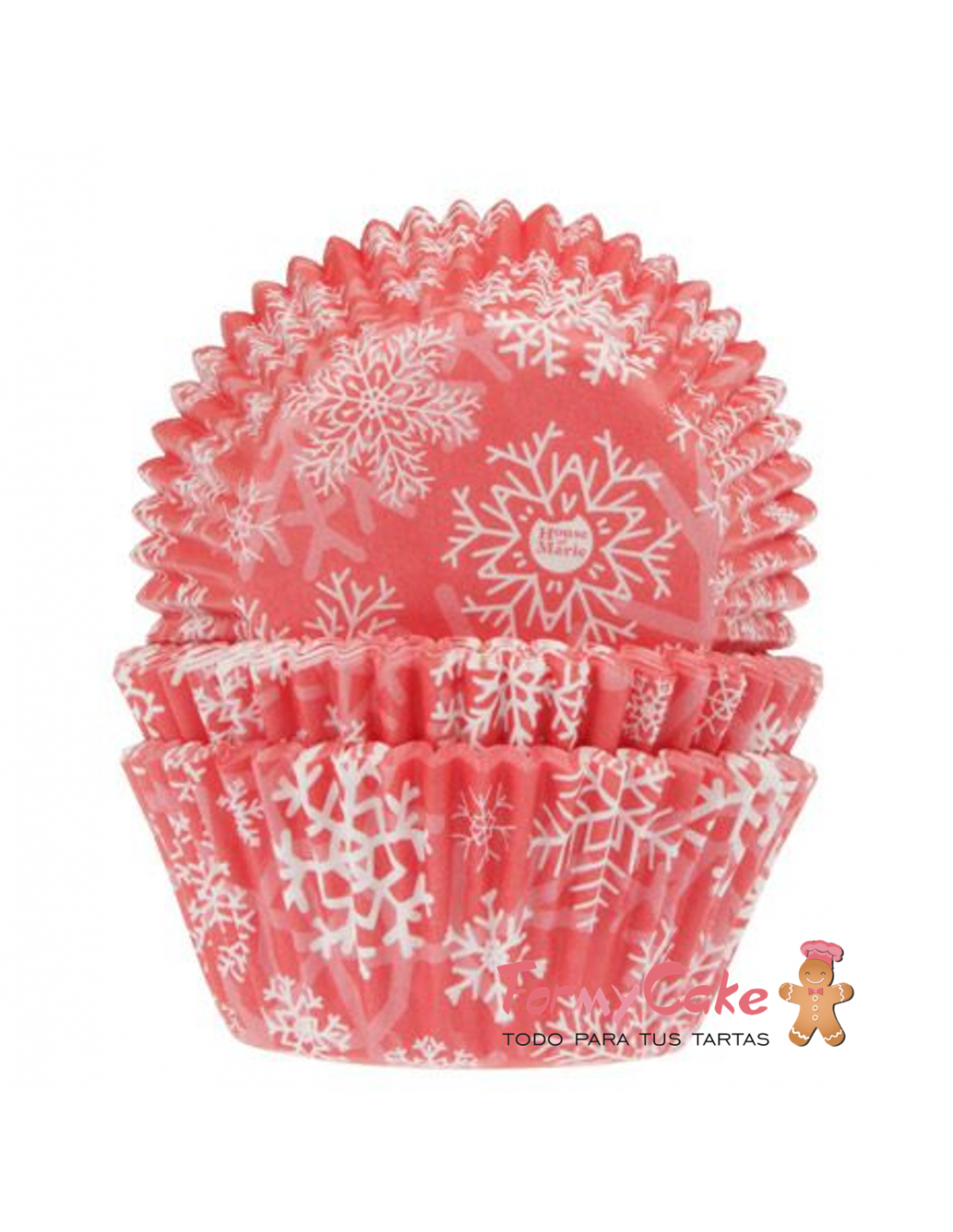 Hornea deliciosos muffins y cupcakes para tus fiestas en estas hermosas capsulas rojas de House of Marie (Baking Cups Snow Crystal Red). Las capsulas para hornear tienen un bonito dibujo de copo de nieve.