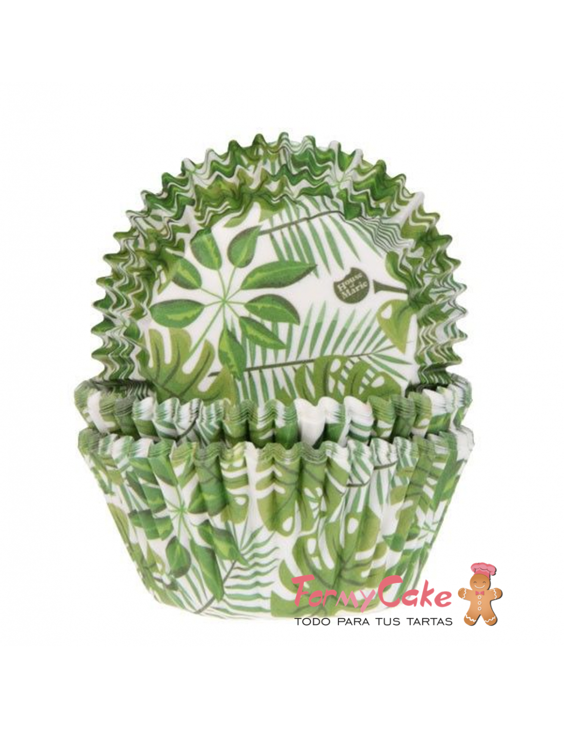 Preciosas cápsulas para hornear de House of Marie en tonos verdes con bonitas hojas impresas. Llenarás de color cualquier evento que celebres. No solo son perfectas para tus cupcakes temáticos sino también para tus muffins, brownies y mucho más.