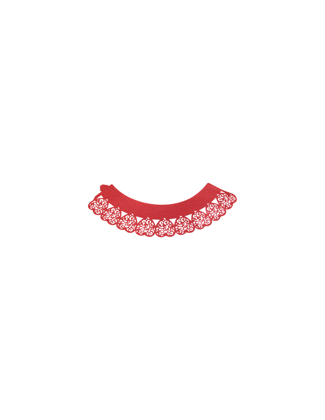 Elegantes envoltorios con detalles de corazones rojos de encaje para una espectacular presentación de cupcakes.