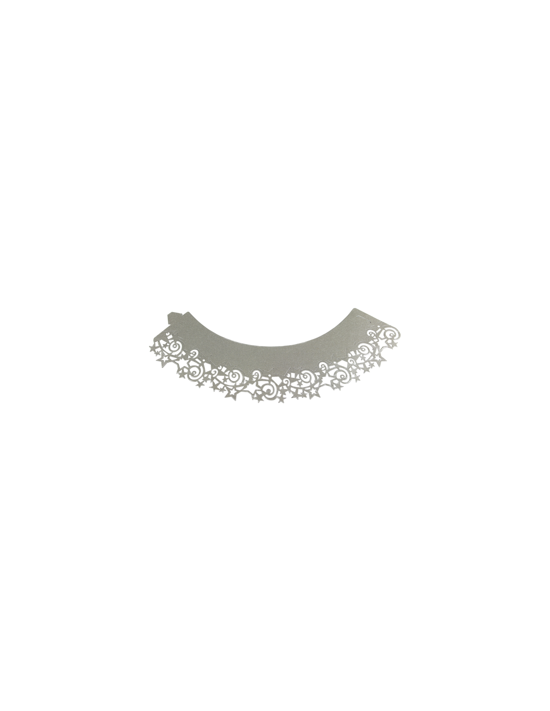 Elegantes envoltorios con detalles de estrellas plateadas de encaje para una espectacular presentación de cupcakes.