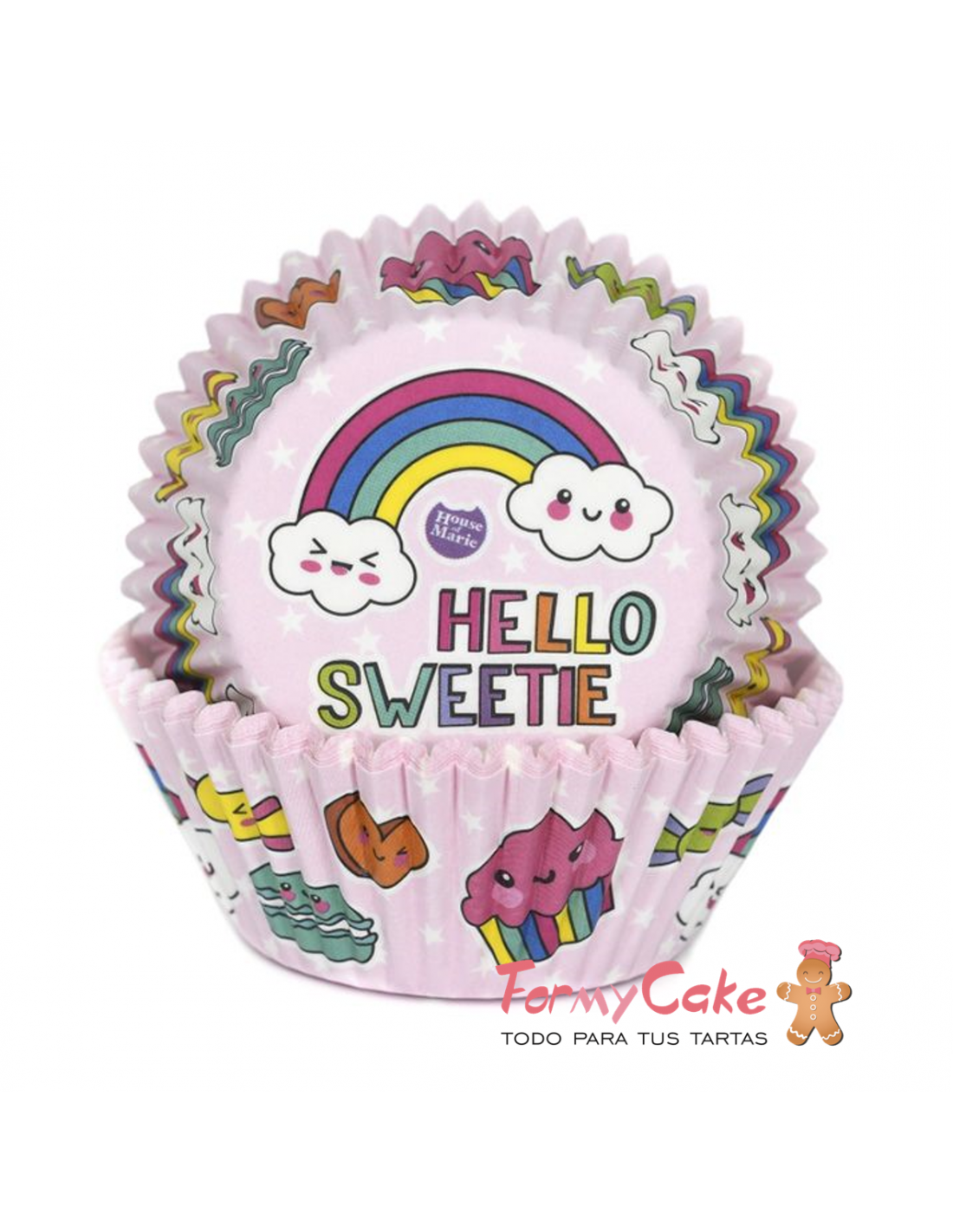 Cápsulas para hornear de House of Marie con un color rosa y los más dulces pequeños arco iris en él.