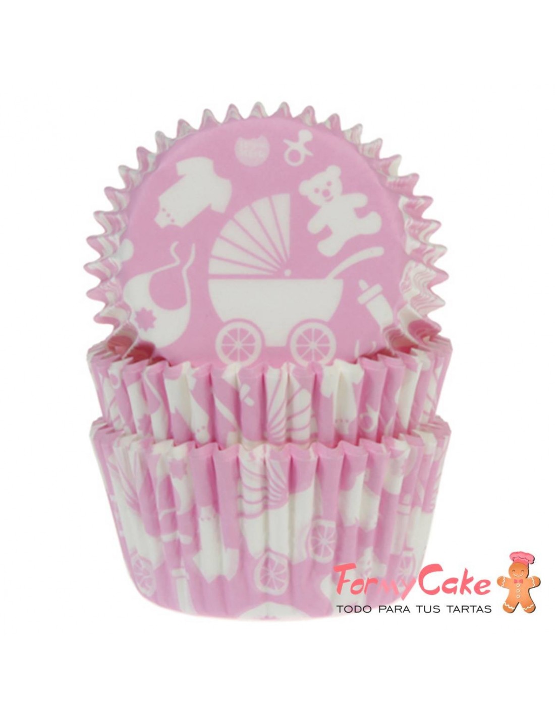 Cápsulas para hornear con motivos de bebé de color rosa.