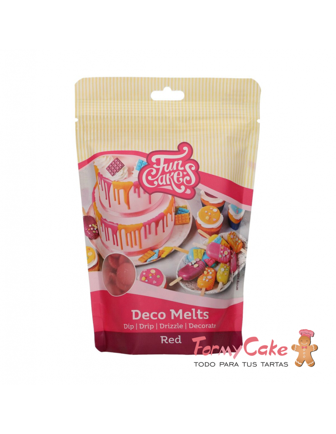 - Sumerja, gotee, rocíe y decore con FunCakes Deco Melts. Los Deco Melts saben a chocolate blanco cremoso.
