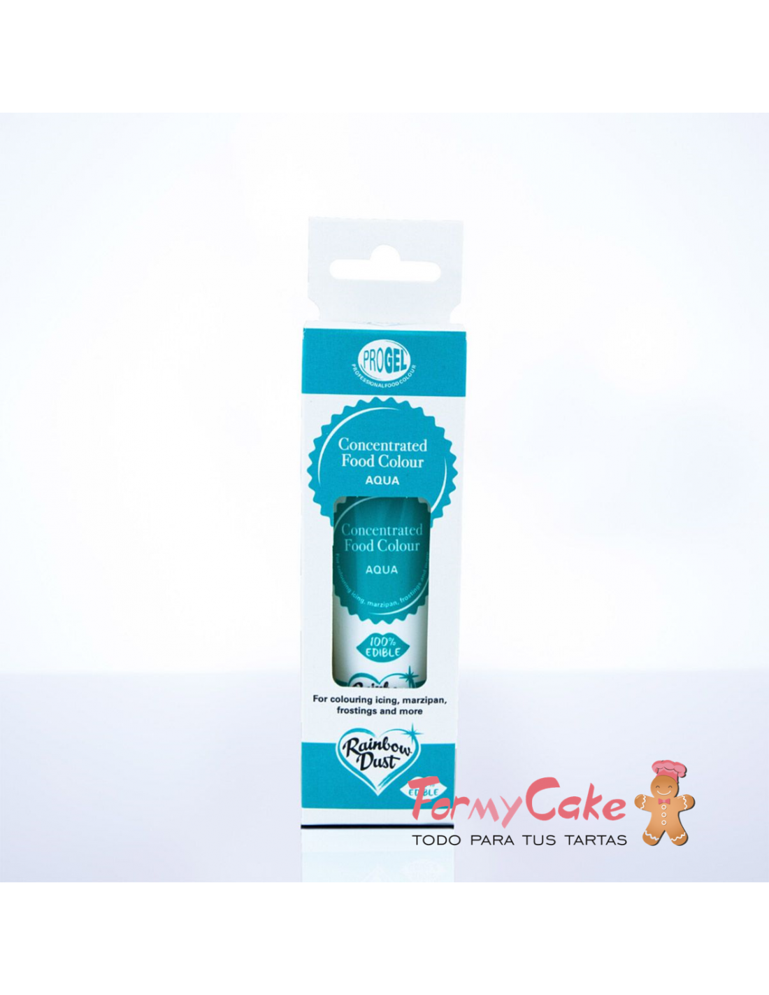 El Color Concentrado ProGel de Rainbow color agua es un colorante muy concentrado. Sólo se requiere una cantidad pequeñísima de ProGel para dar un color rico y profundo a tus creaciones, lo que significa que los tubos duran mucho tiempo. Sólo tienes que añadir una pequeña cantidad a tu fondant, crema de mantequilla, o mazapán y ver como se transforma en el color que quieres.