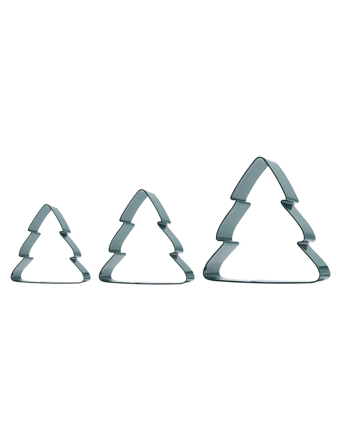 • Set incluye 3 cortadores de metal en forma de árbol de Navidad que se apilan para un fácil almacenamiento.
