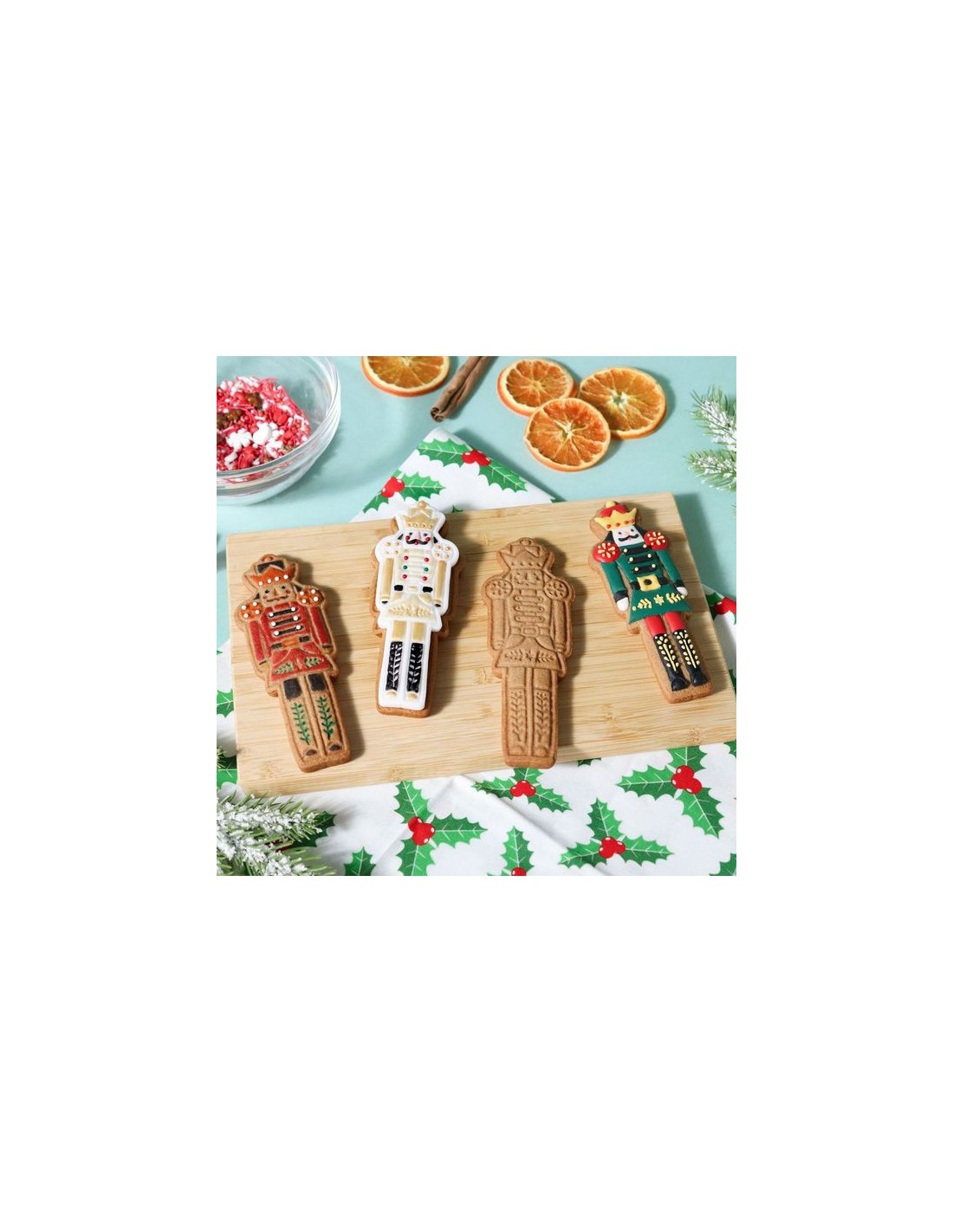 • El set incluye 1 cortador + 1 grabador en relieve con diseño de Cascanueces. Fabricado con plástico resistente y apto para alimentos, mide aprox 42 x 120mm.