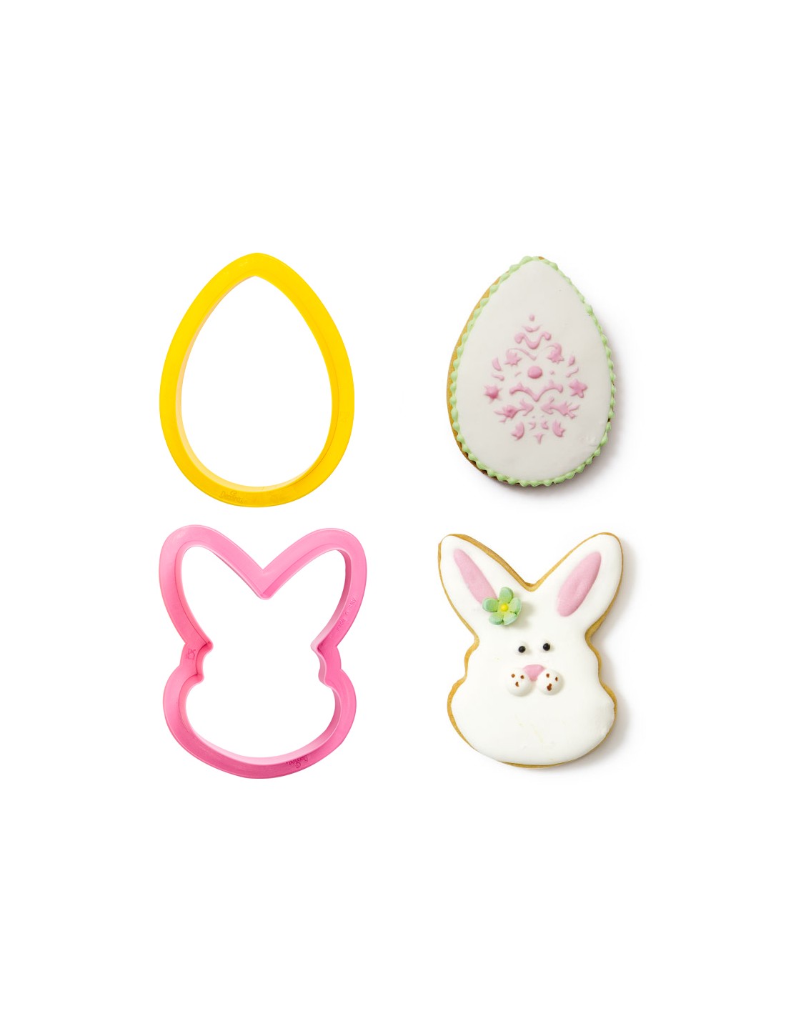 Kit de 2 cortantes de plástico, aptos al contacto con los alimentos, de huevo y conejo de Decora.