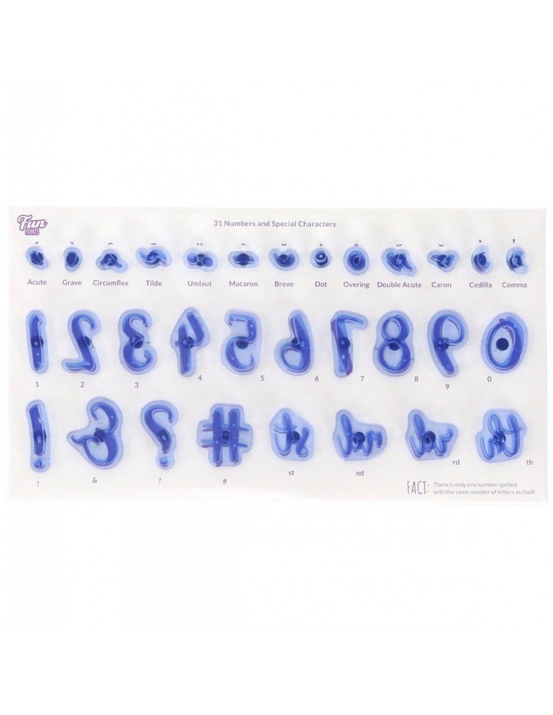 - El set incluye los números 0-9, signos de puntuación ! & ? #, indicadores ordinales st, nd, rd, th y 12 signos diferentes como comillas, diferentes acentos, diéresis, etc. para cubrir una amplia gama de idiomas.