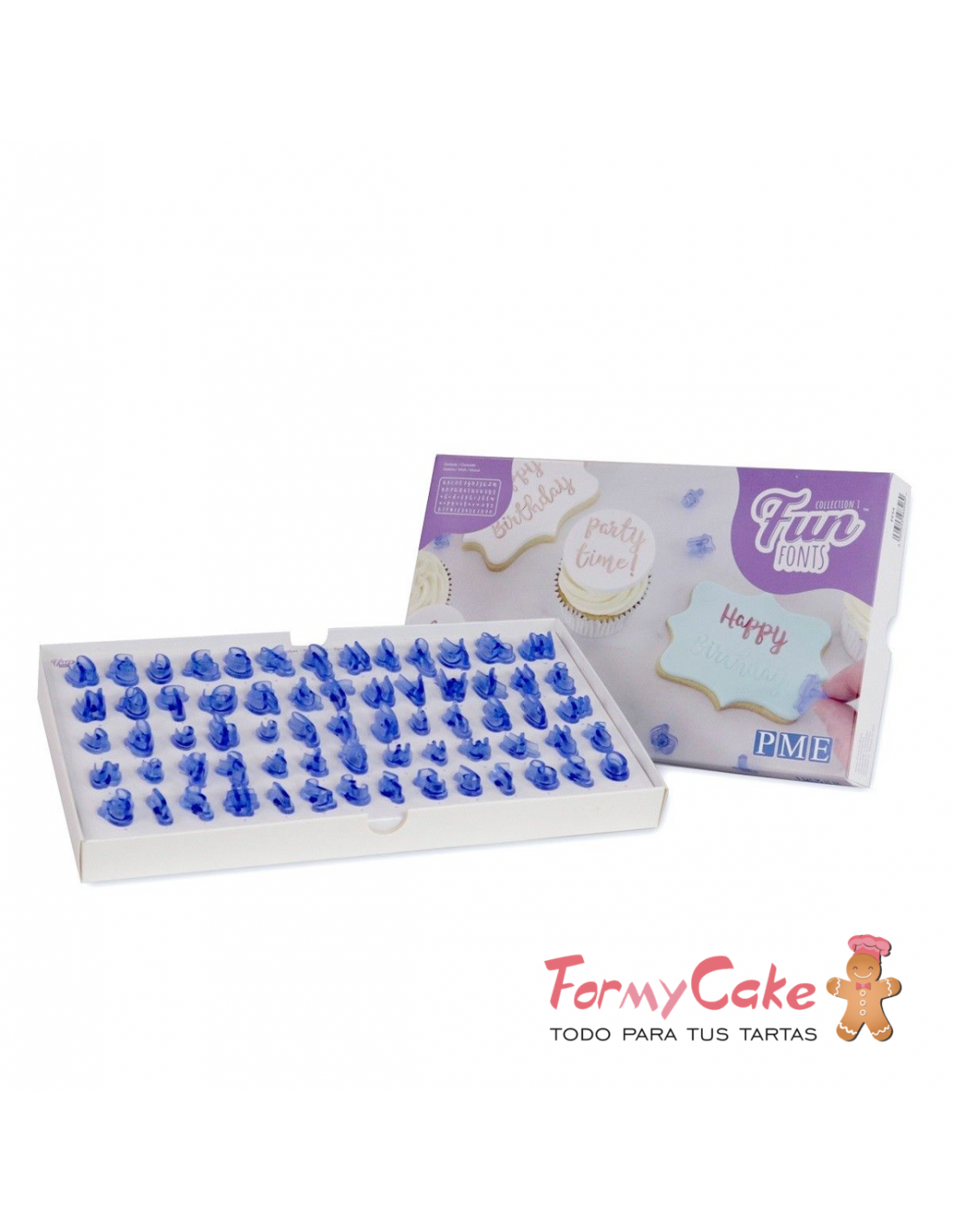 Fun Fonts - Cupcakes and Cookies Stamping Set: el set perfecto de sellos para personalizar cualquier material comestible, incluyendo pasta de azúcar, mazapán e incluso más. De tamaño más pequeño que las Fuentes Divertidas normales, lo que las hace perfectas para usarlas en comestibles más pequeños como cupcakes y galletas. Con 26 letras mayúsculas, 26 letras minúsculas, números y sellos de símbolos las posibilidades son infinitas.