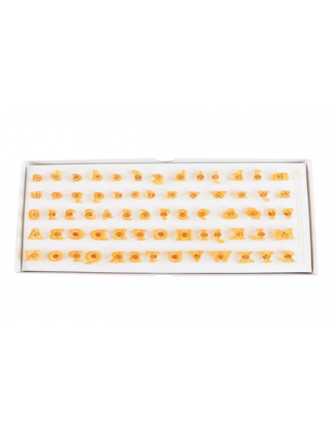 - Juego completo de 66 piezas incluidos 26 mayúsculas, letras minúsculas 26, Número 0 - 9 y los símbolos & amp ;,!? y #.