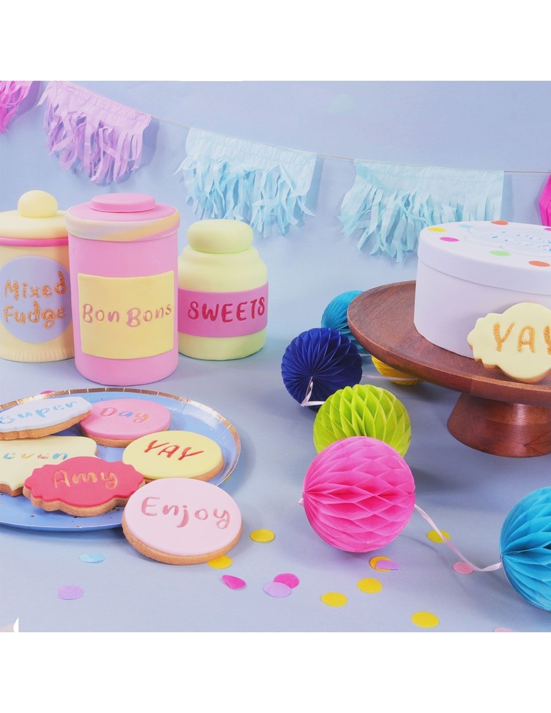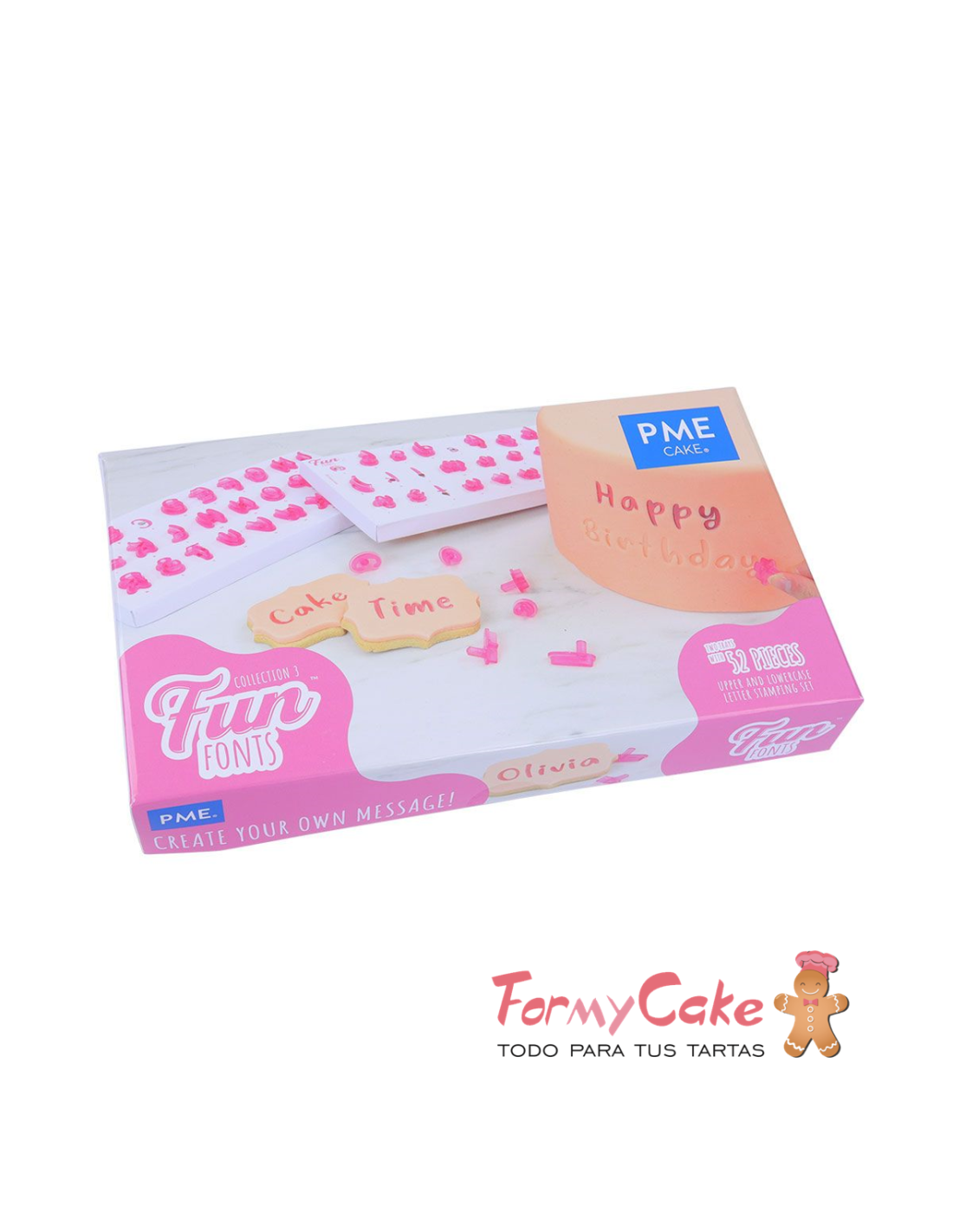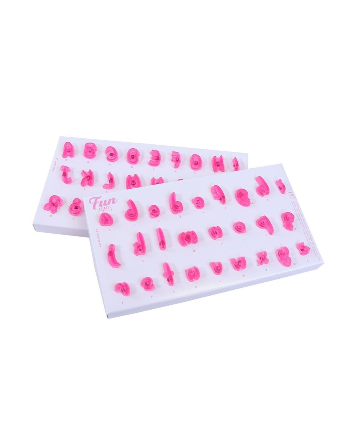 ¡Añade un mensaje personal a tus tartas y dulces con los sellos PME Fun Fonts! Los sellos se pueden utilizar en fondant, crema de mantequilla, pasta de goma, chocolate para modelar y mazapán. El set está hecho de plástico de alta calidad para alimentos y contiene 52 sellos: 26 letras mayúsculas y 26 minúsculas. Los sellos son de plástico transparente de color azul pálido con una línea central que ayuda a colocar las letras. Incluye un asa moldeada para facilitar su uso. No requiere herramientas ni equipos adicionales. El reverso de cada sello muestra la letra y una flecha de dirección para asegurarse de que está en la posición correcta. Estampar nunca ha sido tan fácil. Las letras en relieve se pueden realzar, colorear y decorar utilizando gel de repostería, chocolate derretido, glasa real, espolvorear, pintar utilizando rotuladores alimentarios o pinturas alimentarias.