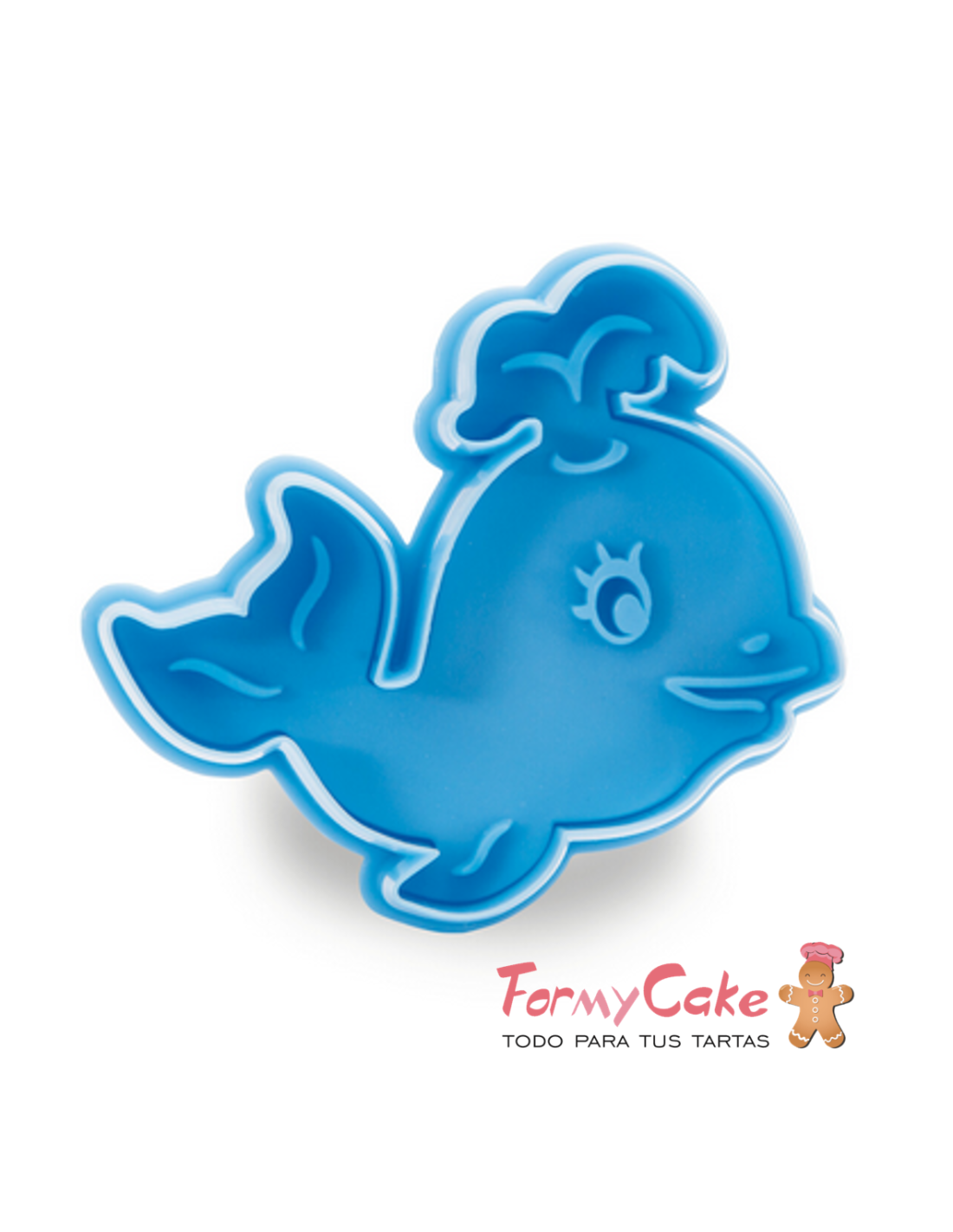 Un precioso molde cortador con expulsor (émbolo), con el que podrá obtener una graciosa ballena.