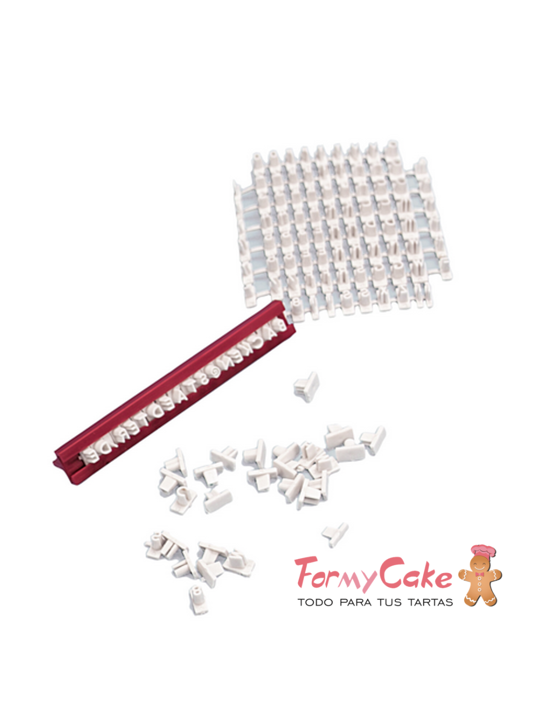 Imprenta con el abecedario y números para marcar sobre galletas y fondant