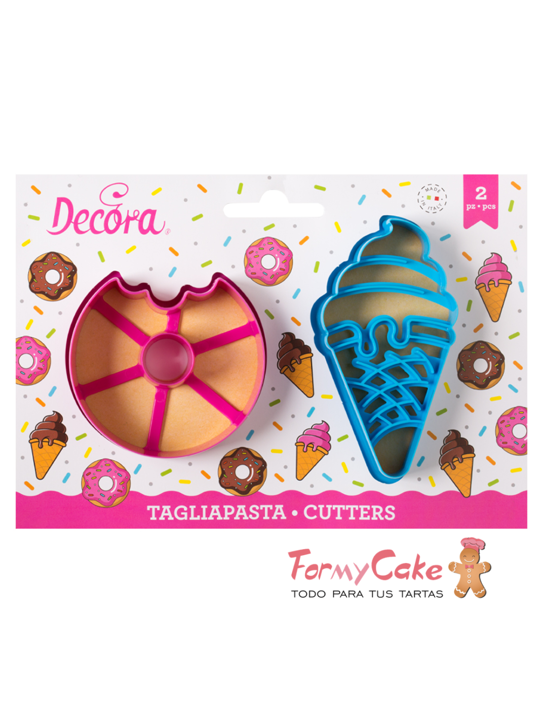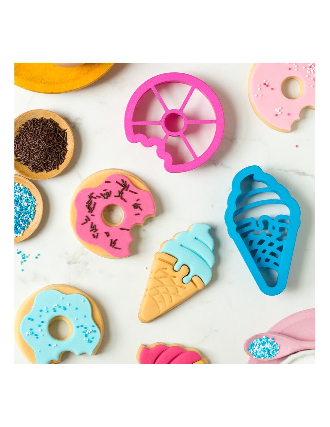 Kit de 2 cortantes de plástico en forma de donuts y cucurucho de helado