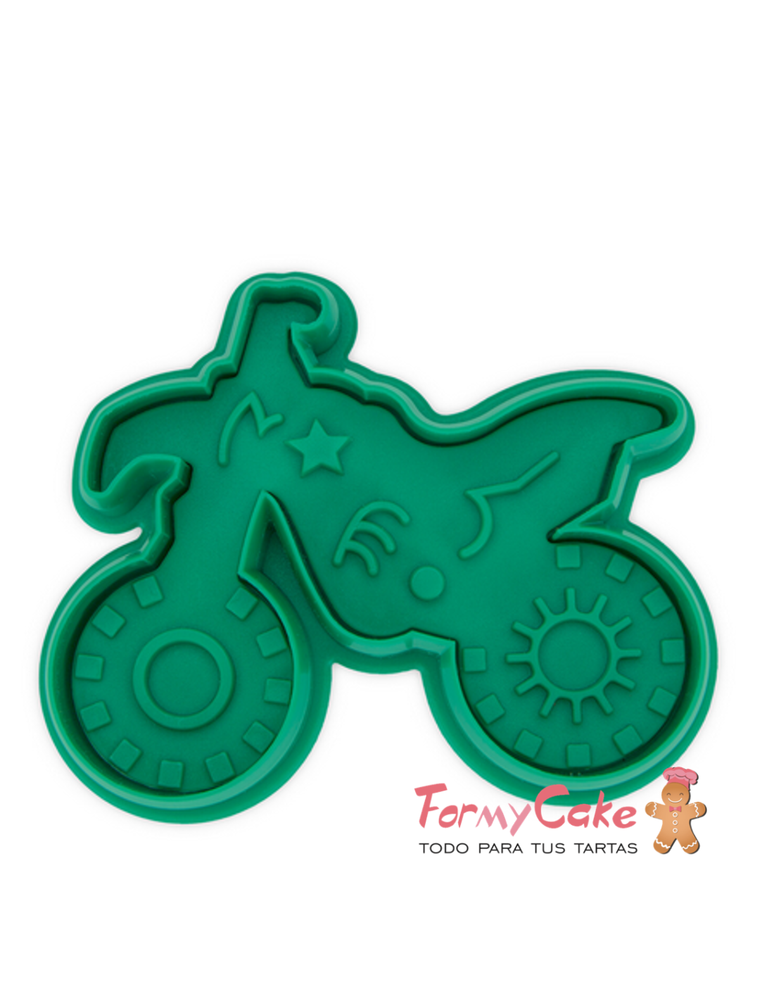 Un precioso molde cortador con expulsor (émbolo), con el que podrá obtener una bonita moto.