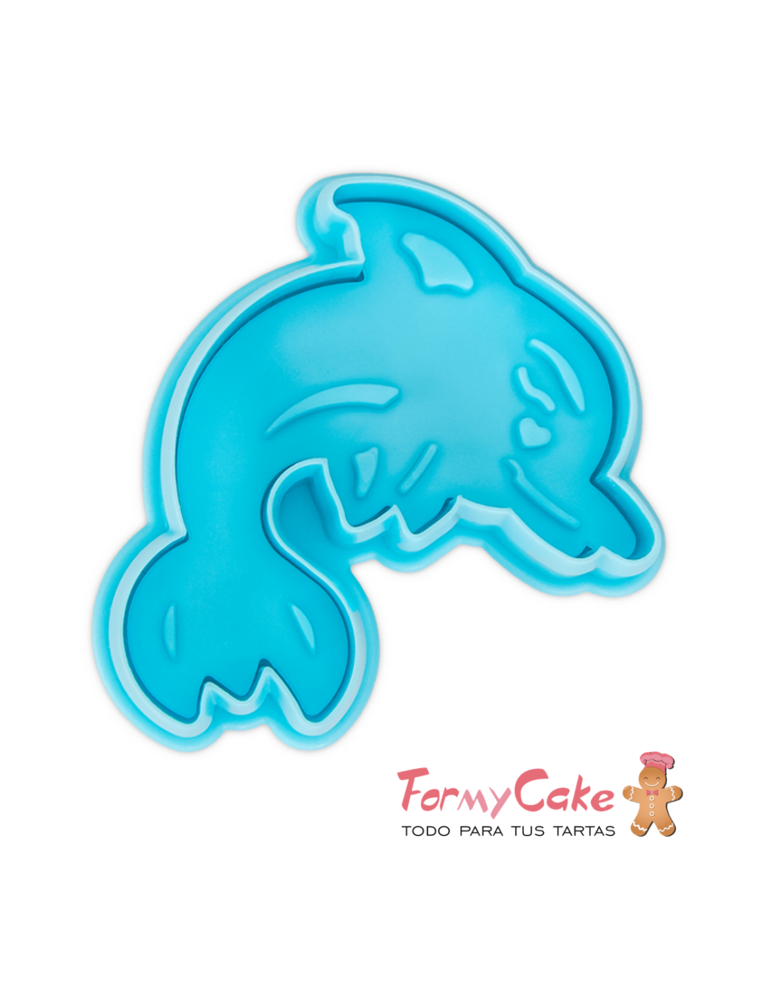 Un precioso molde cortador con expulsor (émbolo), con el que podrá obtener un gracioso delfín.