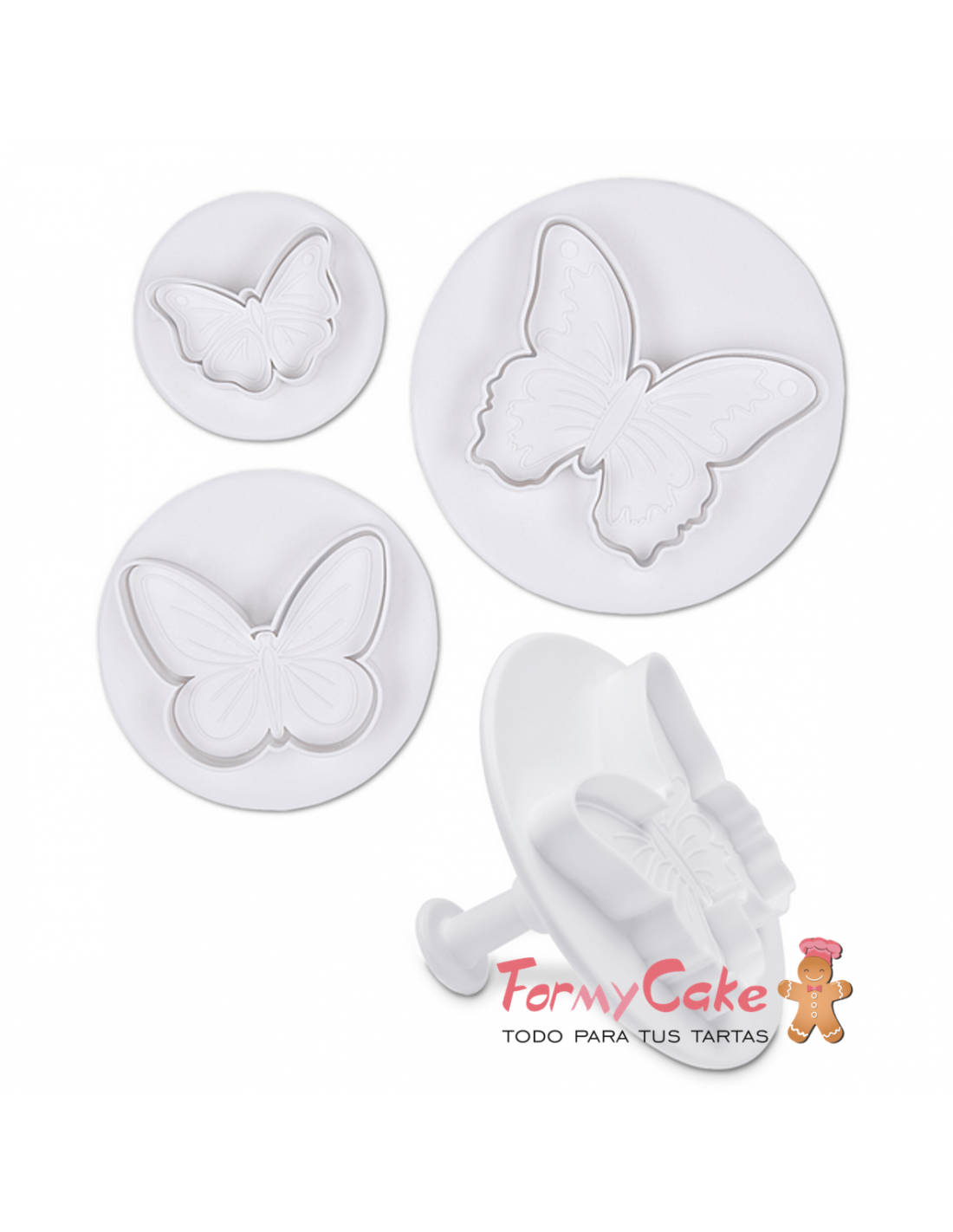 Un precioso set de moldes cortadores con empujador (émbolo), con el que podrá obtener bonitas mariposas.