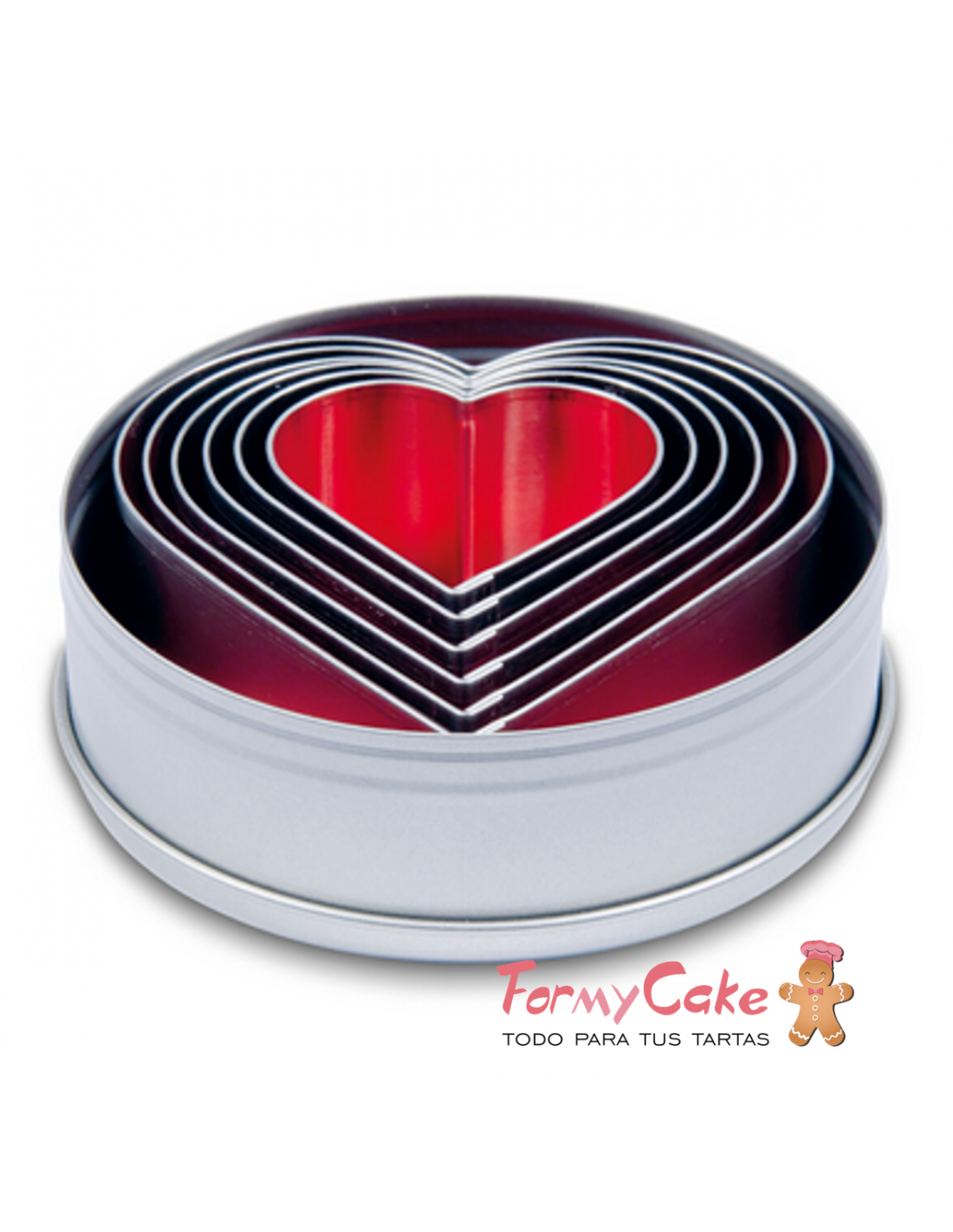Cortadores para galletas metálico de acero inoxidable con forma de corazón en diferentes tamaños, de la marca Stadter . Ideal para repostería y dar forma a galletas, mazapán y fondant y otros artículos.