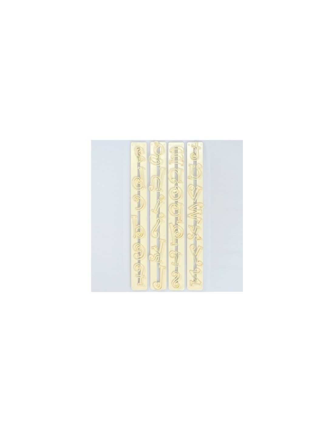 Esta regla funciona mejor cuando amasas bien mazapán o fondant (mezclado con un poco de tilosa) y, a continuación, lo extiendes fino. Presionar la letra deseada y, a continuación, retirar de la regla.