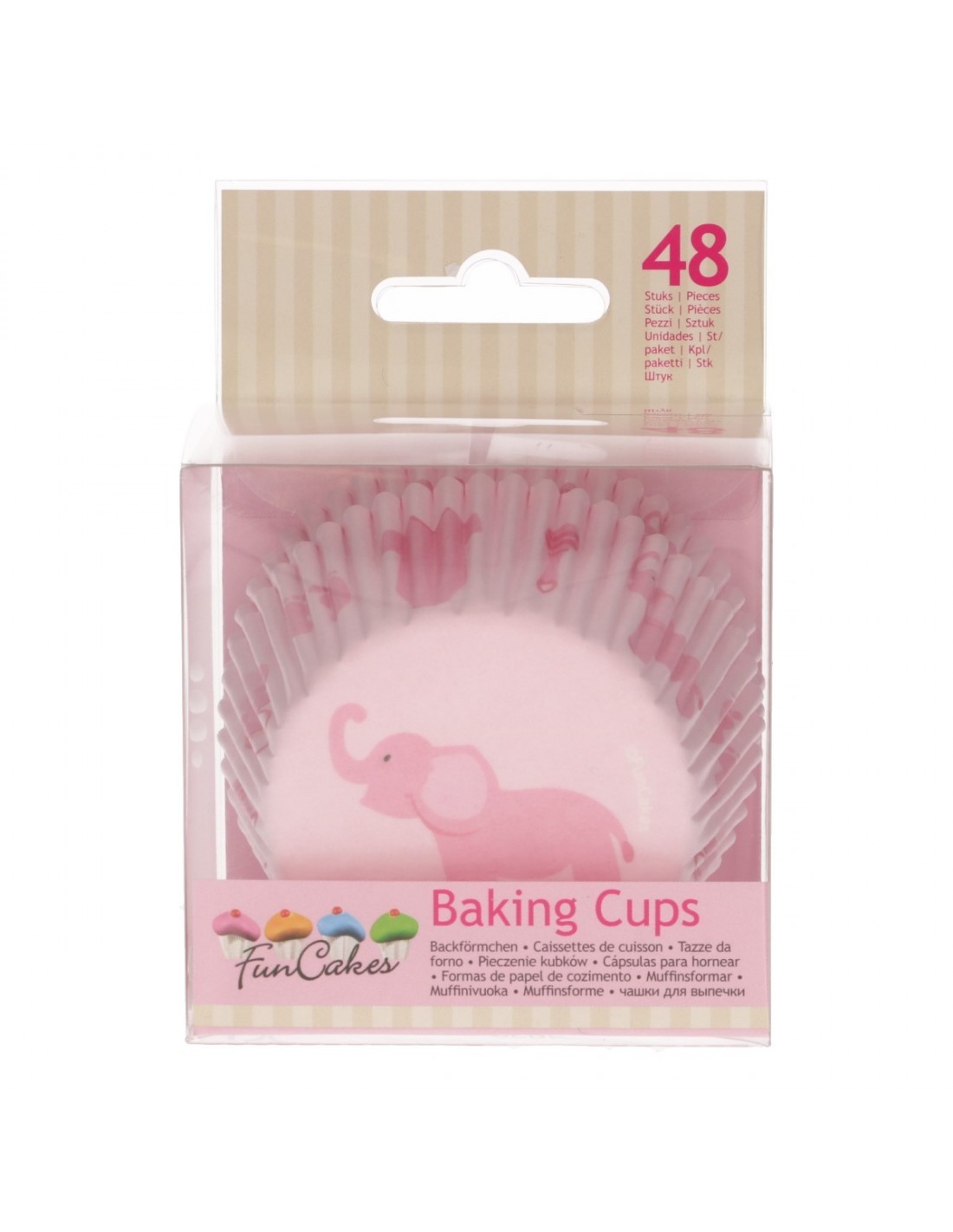 ¡Las cápsulas rosas Bebé Niña (Baby Girl) de FunCakes son perfectas para un baby shower o un bautizo! Usa las cápsulas para hornear para hacer deliciosos muffins, cupcakes o brownies. Las copas rosas tienen un patrón alegre de varias figuras, como un elefante, sonajero, body, chupete y más. Las cápsulas para hornear están hechas de papel de alta calidad a prueba de grasa.