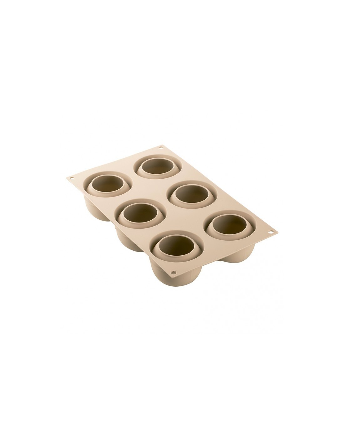 Molde de silicona platino de excelente calidad, con 6 cavidades para elaboraciones redondas con forma de corazón central, de Silikomart.