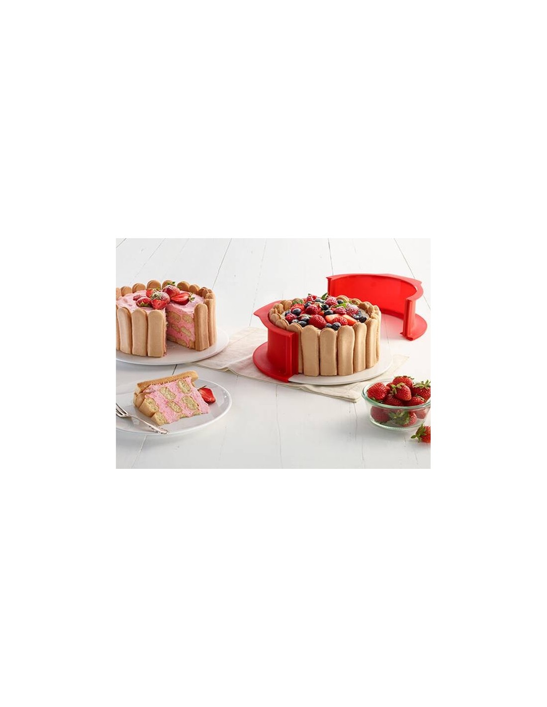 Prepara Charlottes de una manera mucho más fácil y rápida. El molde desmontable facilita la preparación y el desmolde del pastel. Conseguirás un resultado perfecto gracias al cierre de las paredes de silicona del molde. Base cerámica y banda superior 100% silicona platino.