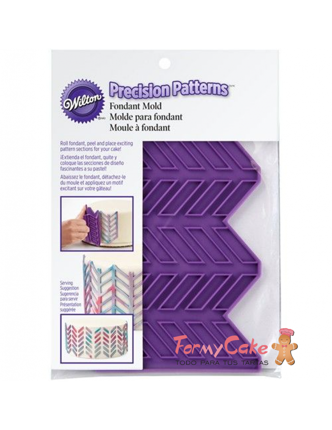 Crea bonitas decoraciones en tus pasteles con los tapetes de Silicona de Wilton (Wilton Silicone Precision Patterns -Herringbone). Con este tapete podrás cortar fácilmente un diseño de mazapán o fondant que quedará genial alrededor de tu tarta.