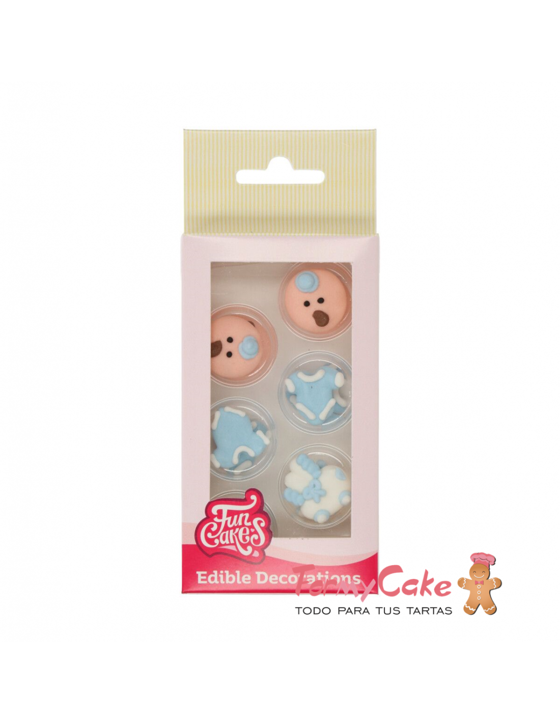 Set Decoraciones De Azúcar Bebé Niño, 12ud. Funcakes