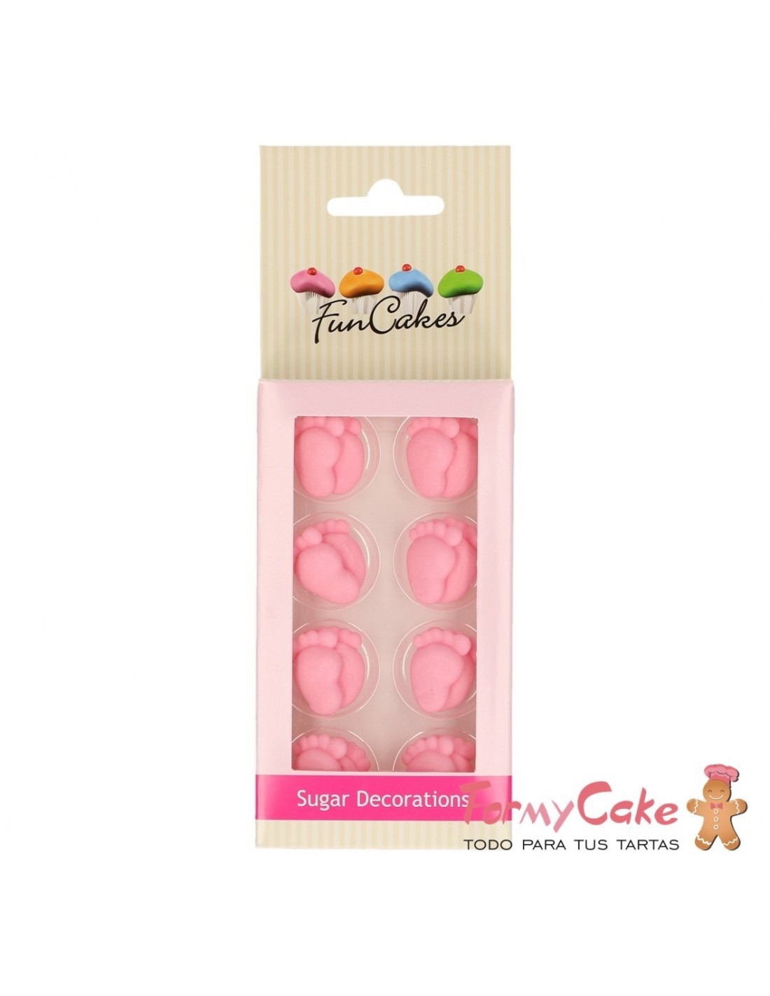 Set Decoraciones De Azúcar Pies Bebe Rosas, 16ud. Funcakes
