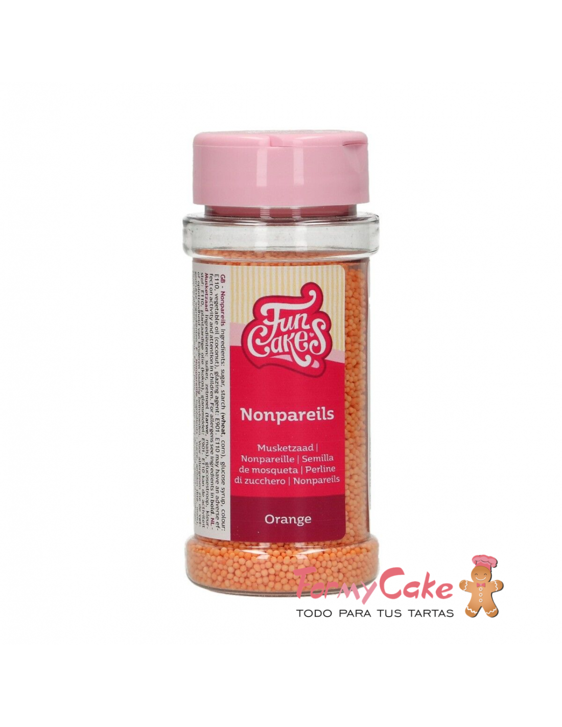 Los nonpareils naranja de FunCakes están envasados en un práctico recipiente y son ideales para decorar cupcakes, muffins, galletas, tartas y pasteles y mucho más.