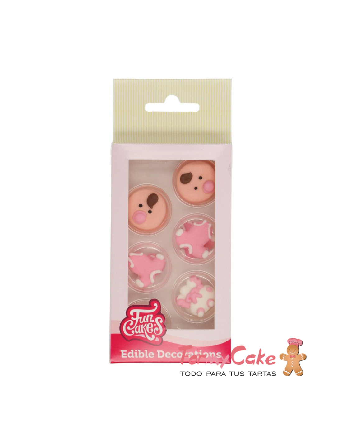 Set Decoraciones De Azúcar Bebé Niña, 12ud. Funcakes
