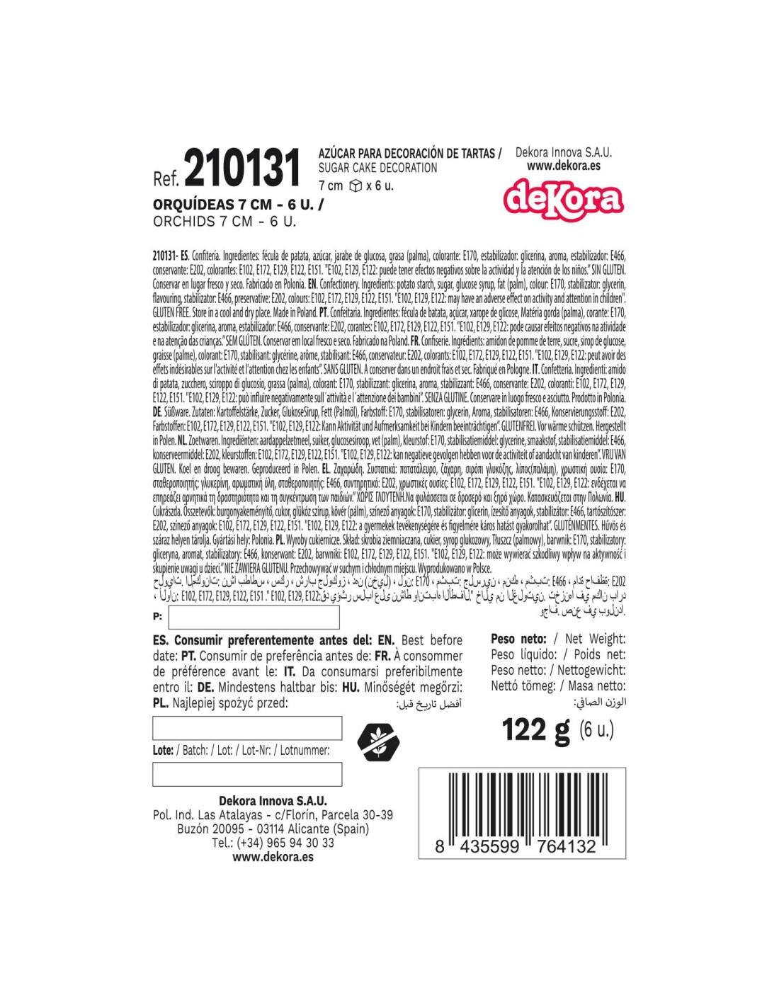 Set 6 Orquídeas de Azúcar 8 CM - Colores Surtidos - Marca Dekora