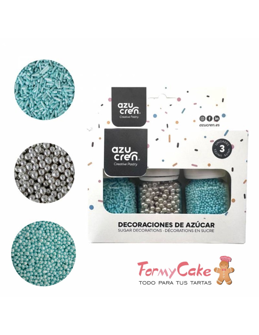 Set Sprinkle Fideos Turquesa/Nonpareil Turquesa/Perlas Plata Azucren