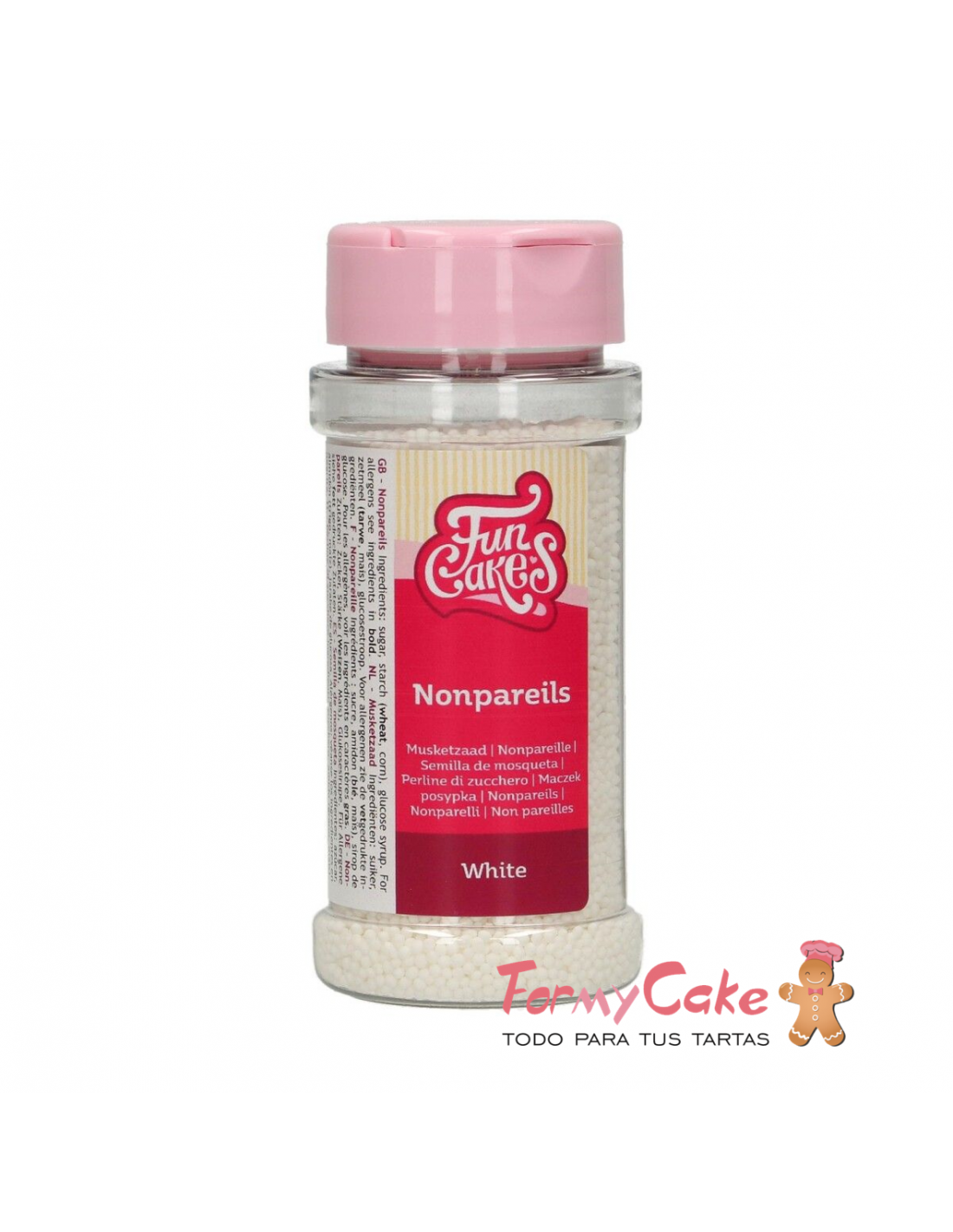 Con los nonpareils de FunCakes de color Blanco, son muchos los acentos decorativos posibles, por ejemplo, se pueden utilizar como borde para una tarta o como decoración de galletas Se presenta en un práctico frasco dispensador.