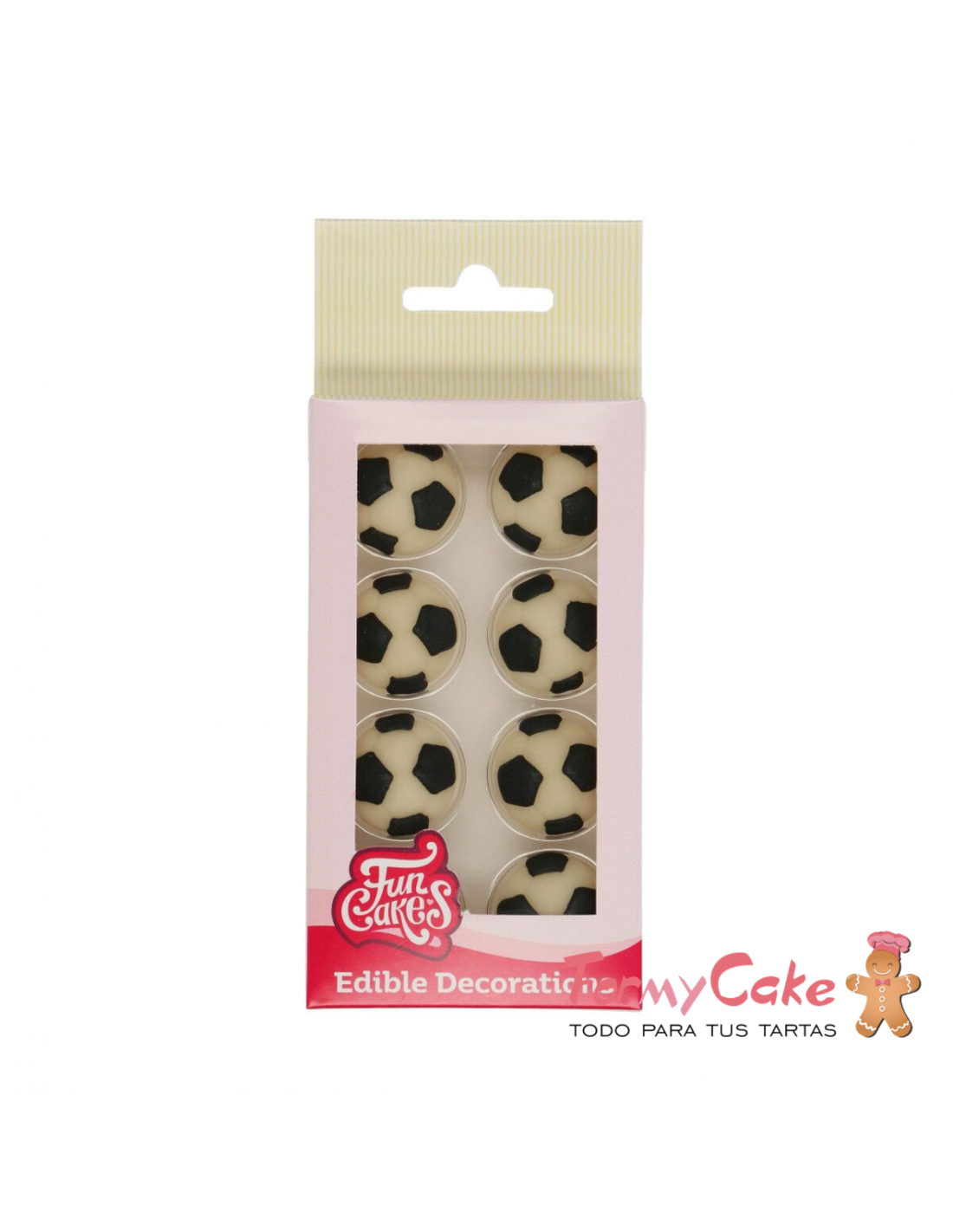 Este juego de 8 pelotas de fútbol comestibles de FunCakes es ideal para decorar cupcakes, galletas y tartas. Las decoraciones de fondant son muy detalladas y perfectas para tus fiestas temáticas de fútbol.