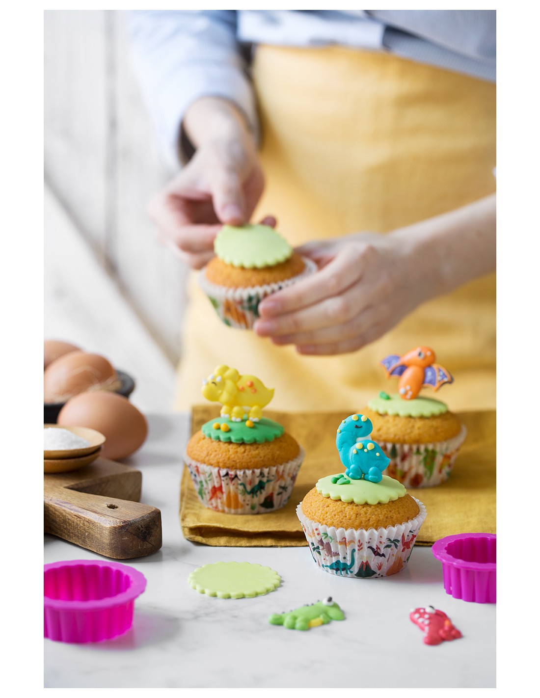 Divertidos dinosaurios de Azúcar de colores para la decoración de tartas.