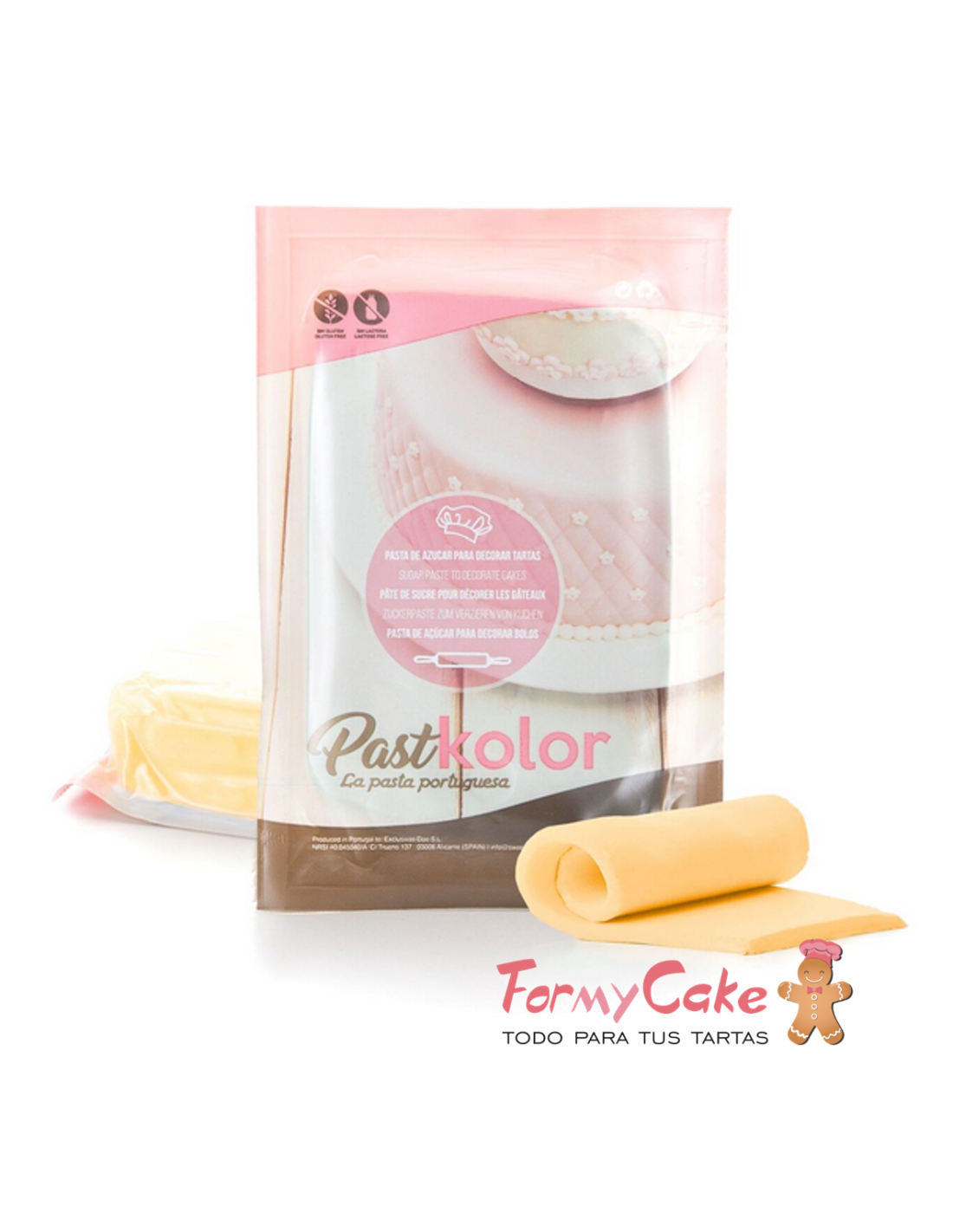 De sabor cítrico, es ideal para cubrir y modelar. Es elástico y estable, logrando un acabado final fino y elegante. Con nuestro fondant Pastkolor evitamos grietas, arrugas y roturas.