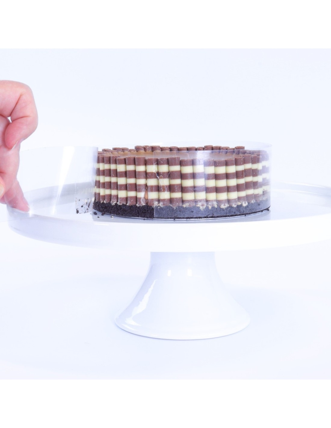 Con el acetato podemos trabajar con chocolate, conseguir un contorno perfecto en nuestras tartas de queso... es muy fácil de usar y manipular.