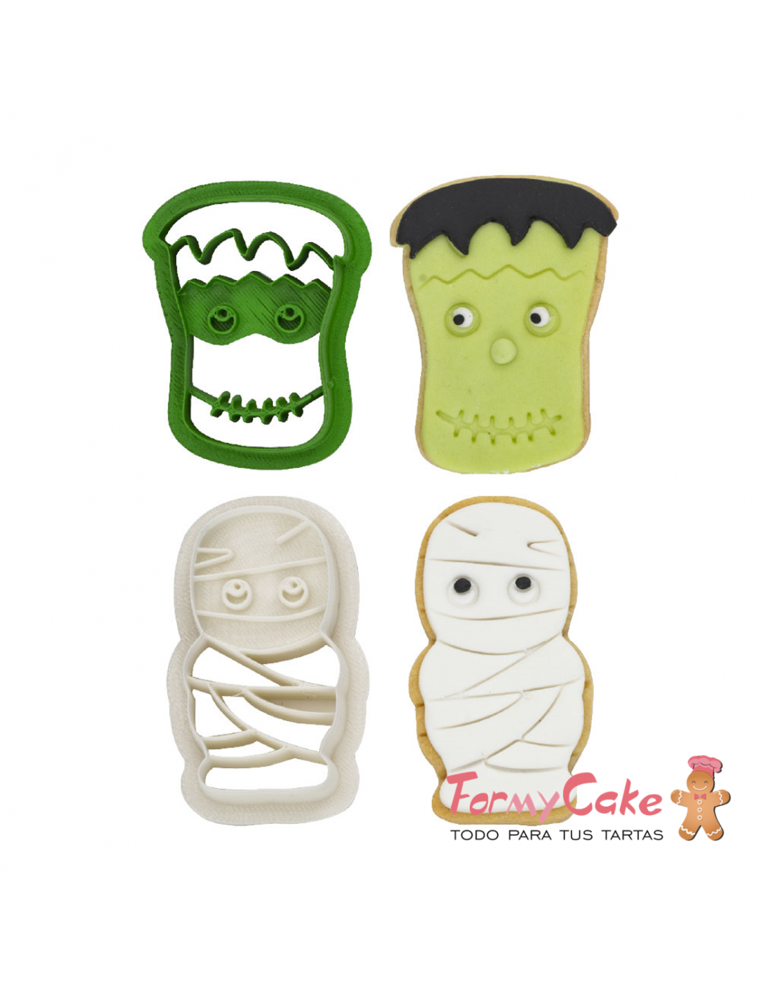 Set de 2 cortadores para tartas y galletas de Frankenstein y momia de Decora.