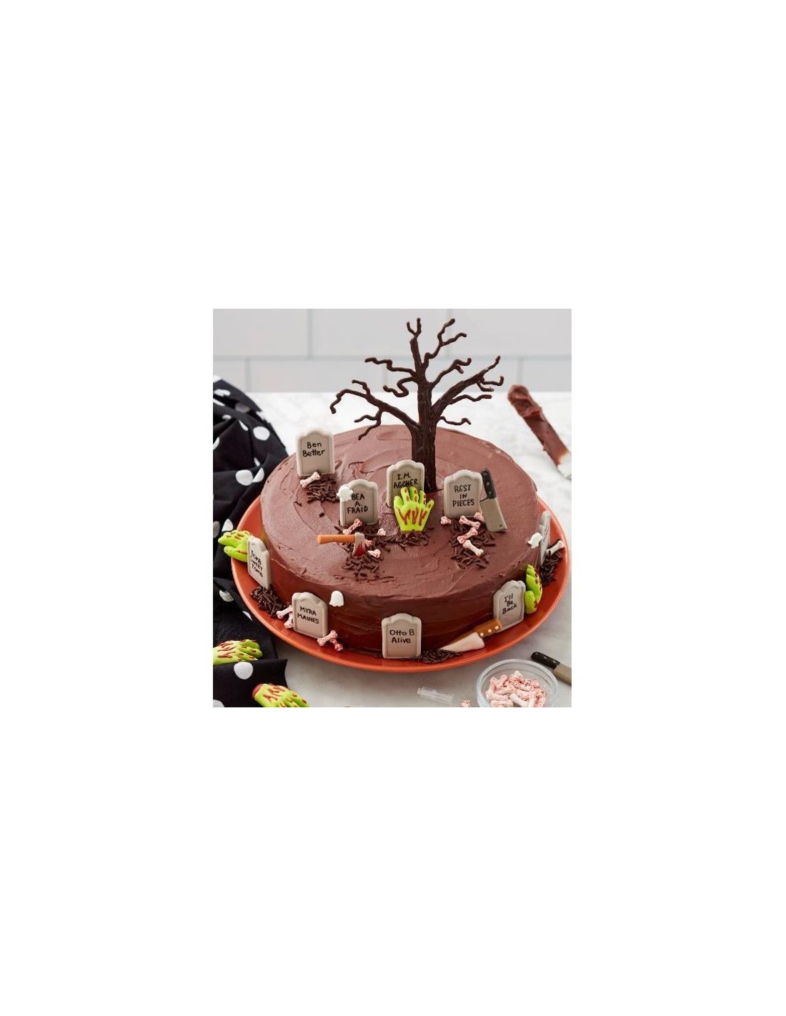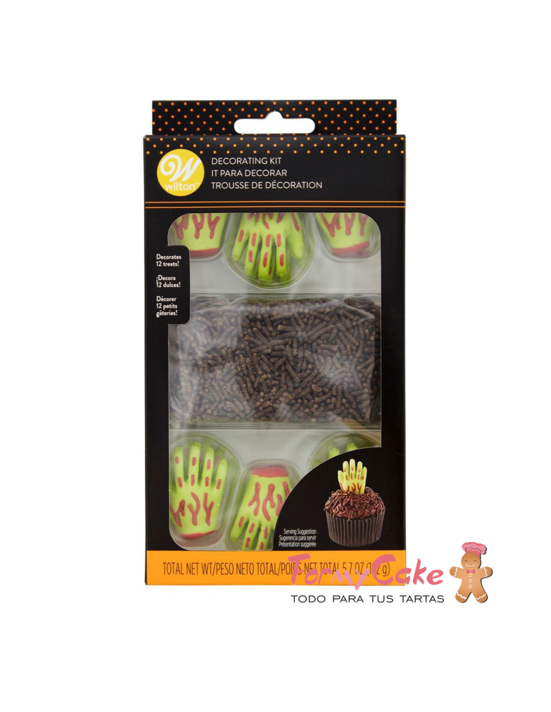 Haz unos cupcakes horripilantes u otros dulces de Halloween con este kit de decoración de zombis de Wilton. Sólo tienes que espolvorear jimmies sobre los cupcakes recién escarchados e insertar el topper de caramelo con forma de mano de zombi para dar un dulce susto.