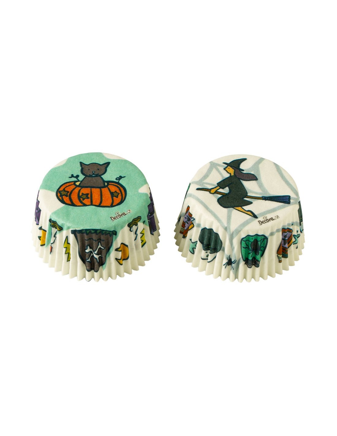 Prepara tus cupcakes con estas capsulas de papel con divertidos dibujos de bruja y gato negro, de la marca Decora Italia. Para hornear, presentar y dar magdalenas y dulces. Resistente hasta 220 °C. En papel de horno. Envasado en blíster.