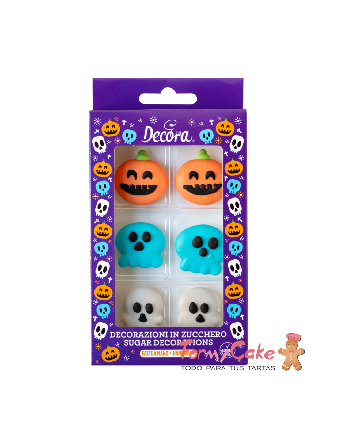 Decoración de Azúcar Calaveras y Calabazas Halloween 6ud Decora