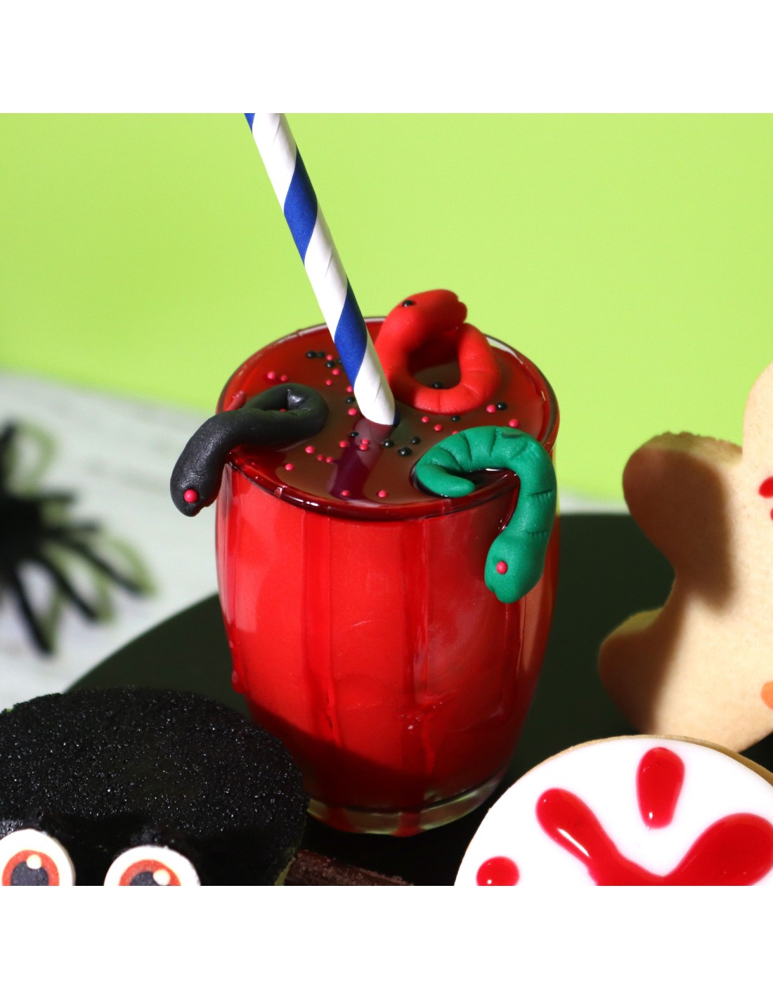 - Fácil de aplicar: perfecto para rociar, goteo, salpicar o untar en cupcakes y galletas para crear un efecto verdaderamente espeluznante. Viene con una tapa para volver a sellar y usar más tarde.