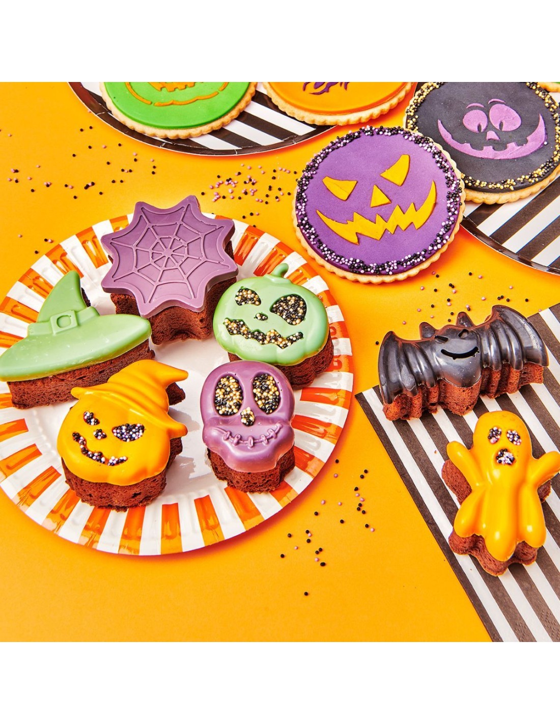 Prepara dulces espeluznantemente divertidos para Halloween con este Wilton Molde de Silicona Fantasma / Sombrero de Bruja / Murciélago / Calabaza / Calavera / Telaraña. Perfecto para fiestas de Halloween o meriendas escolares. Este molde permite crear fácilmente formas espeluznantes y adorables que a todos les encantarán. Llena cada cavidad con tu mezcla favorita para pastel o brownie y hornea como se indica. Una vez fríos, desmolda tus figuras fantasmales y decóralas con glaseado, chispas o chocolate derretido. También es ideal para helado, chocolate o gelatina — ¡una divertida y aterradora adición a tu colección de repostería para Halloween!
